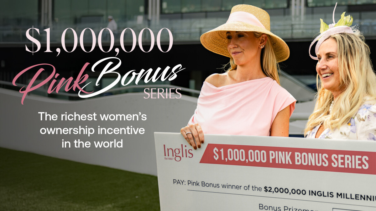 To be eligible for the $1,000,000 lnglis Pink Bonus Series, any horse must be eligible for, fully nominated and paid up for the Inglis Race Series and be a minimum 75% owned or leased by female owners. The Managing Owner of the horse must also be female.