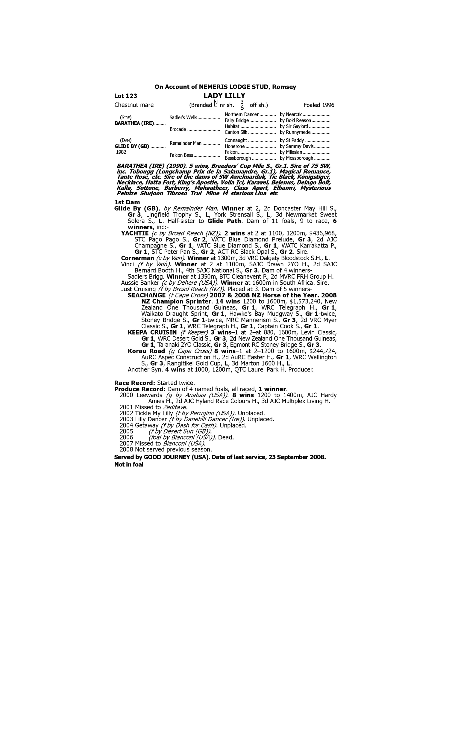 Lot 122 has pedigree updates since the release of the catalogue.
