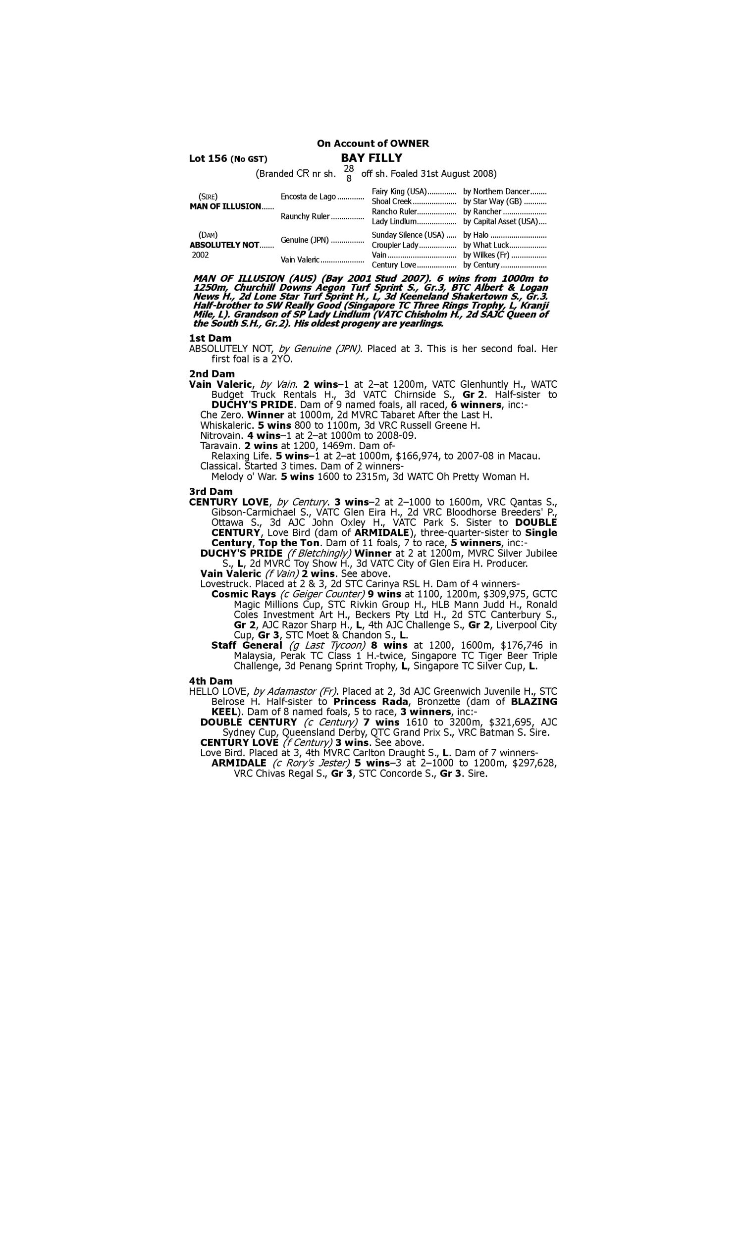 Pedigree for Lot 155 Danbird - Sun Peak (USA)