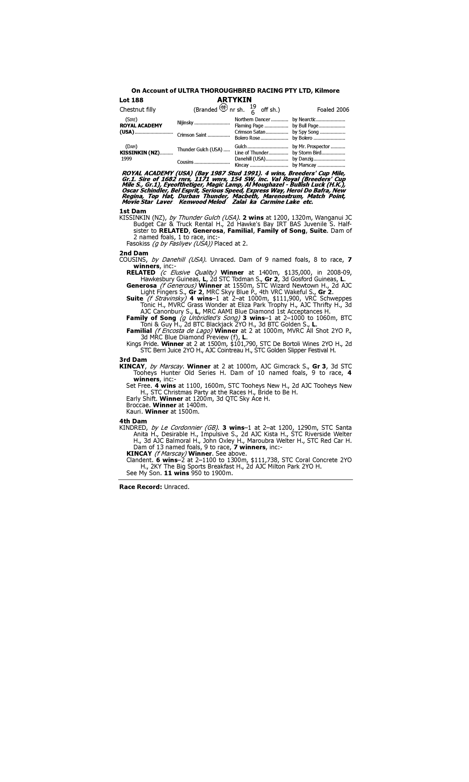 Pedigree for Lot 187 Pure Theatre - Imbiancare (NZ)