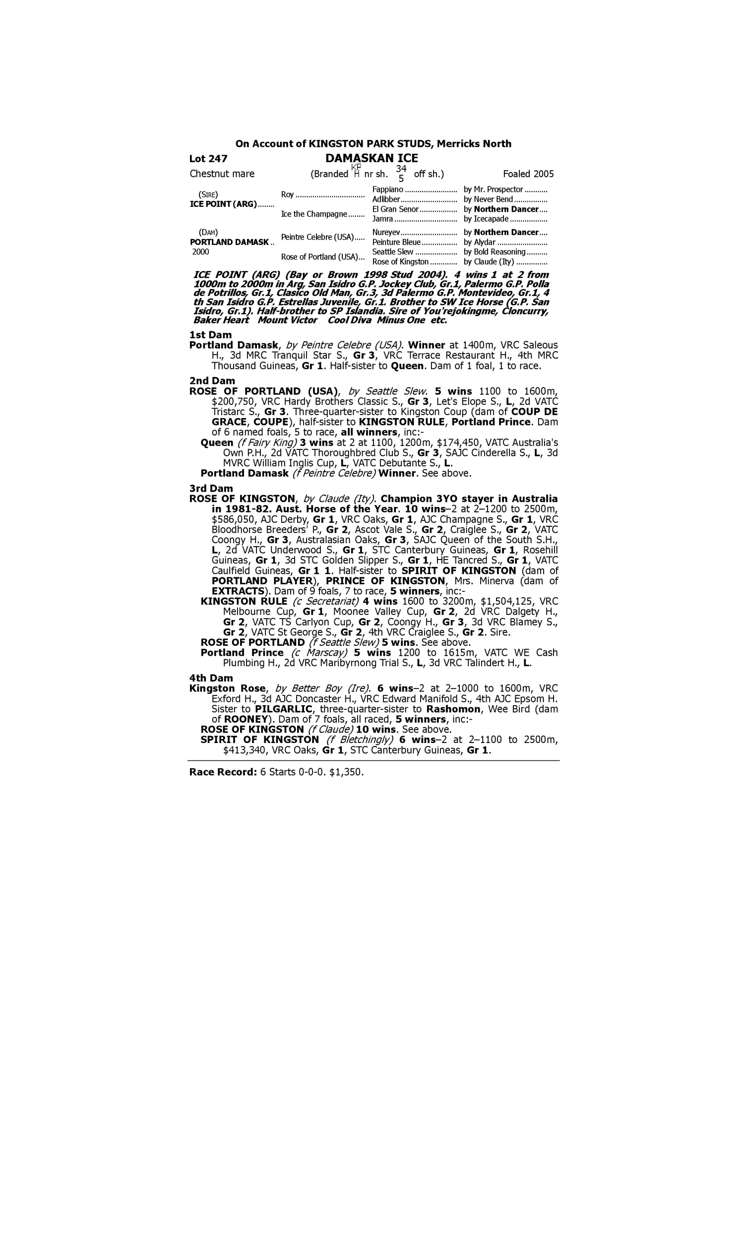 Lot 246 has pedigree updates since the release of the catalogue.