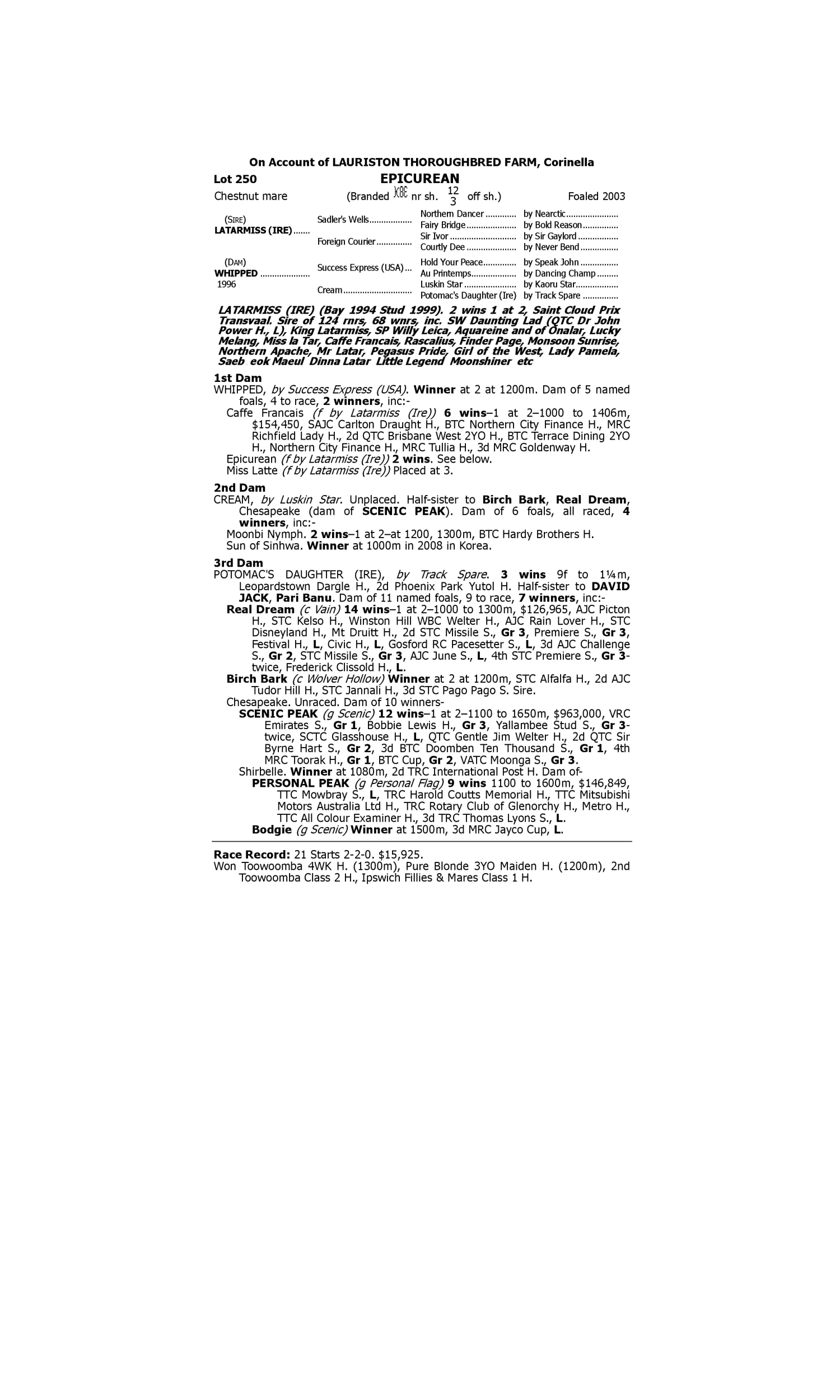 Lot 249 has pedigree updates since the release of the catalogue.