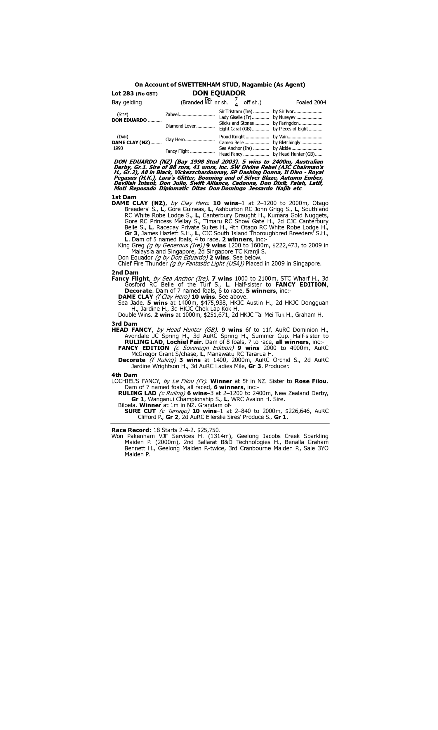 Lot 282 has pedigree updates since the release of the catalogue.