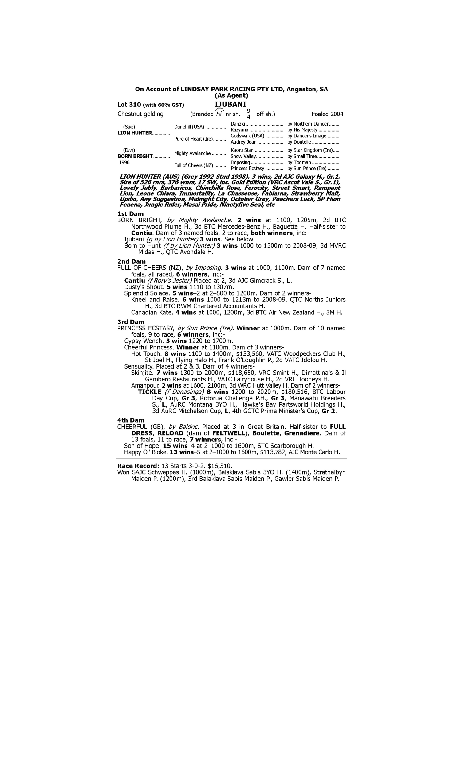 Cosmic Vision (2006.g. by Bel Esprit-Cosmic Dust, by Hurricane Sky-Prodigious Girl). 3rd Echuca RC Deniliquin RSL Maiden P. Spirits in the Sky (2005.g. by Bel Esprit-Cosmic Dust, by Hurricane Sky-Prodigious Girl). 1st Forbes JC Ainsworth/Rodgers Industries H.