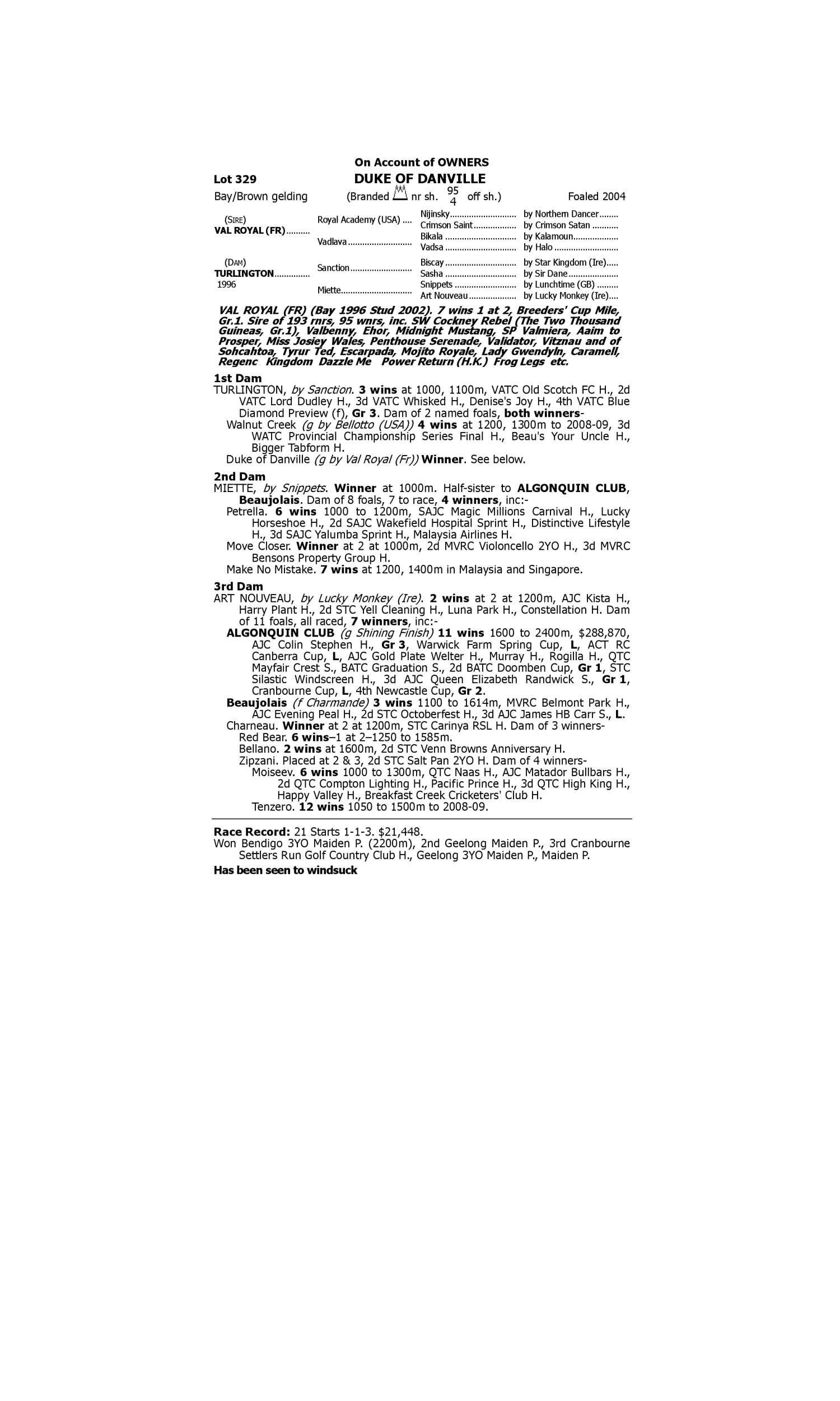 Beau Desert (2005.g. by Bel Esprit-Desert Strike, by Straight Strike-Desert Love). 1st Echuca RC Two Tarts Juice Bar H. Uvinza (2006.f. by Bertolini-Baddi Heights, by Shirley Heights-Baddi Baddi). 3rd Newmarket Aphrodite S. L Berathan (2006.c. by Unaccounted For-Iclal, by Prince of Birds-Misty Point). 1st Istanbul Sedat Ozcan