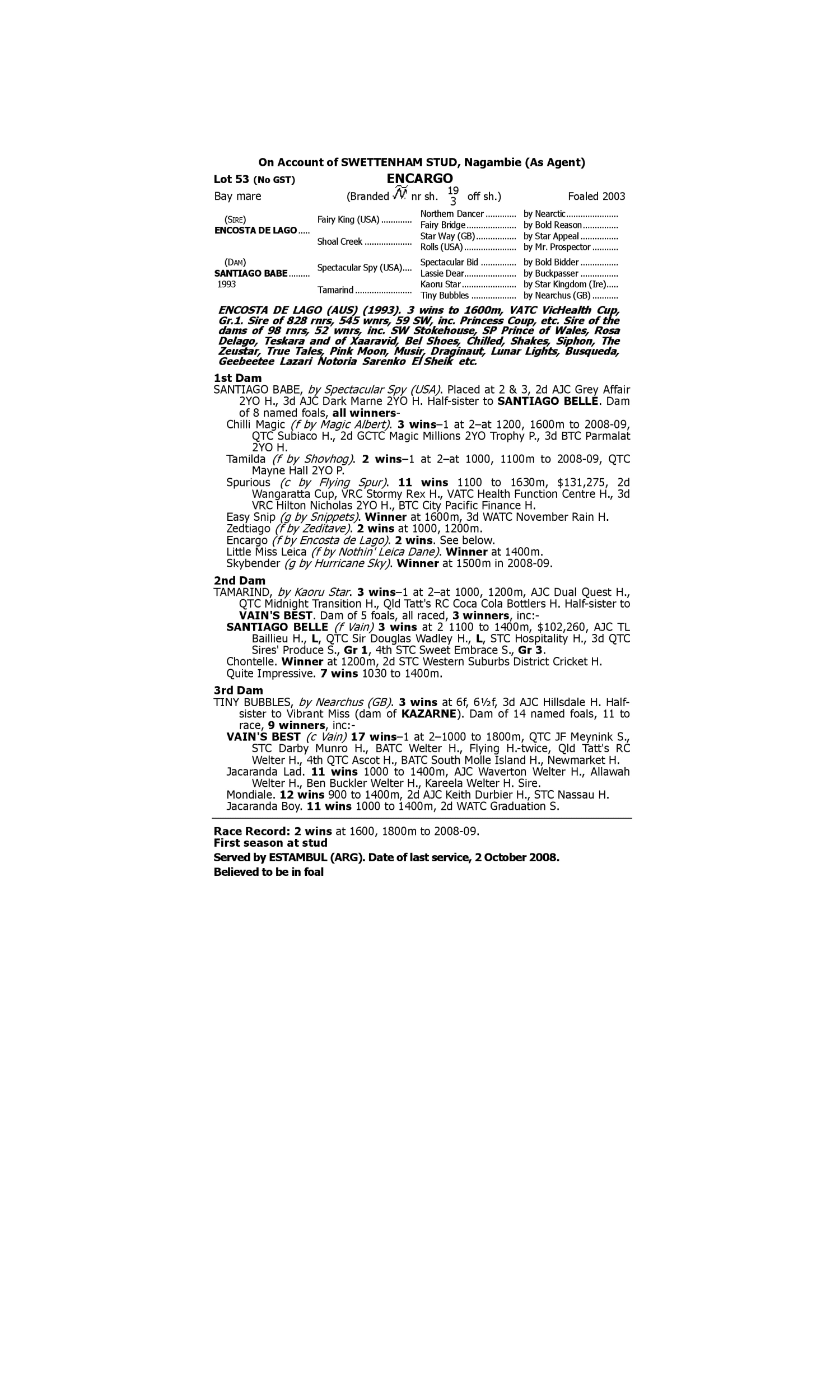 Pedigree for Lot 52 Bellotto (USA) - Rarely Caught (NZ)