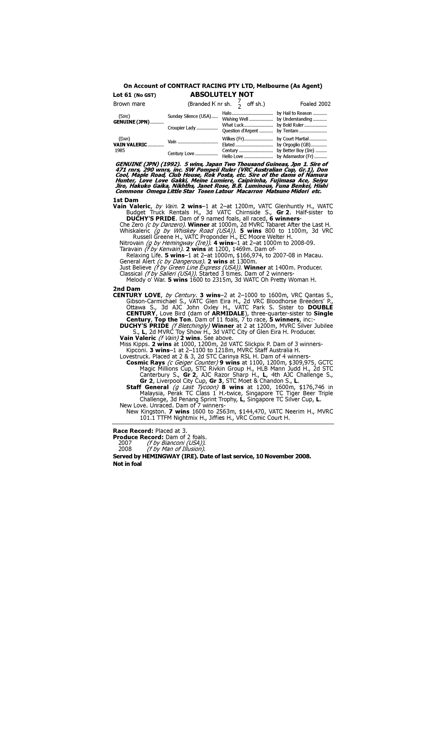 Lot 60 has pedigree updates since the release of the catalogue.