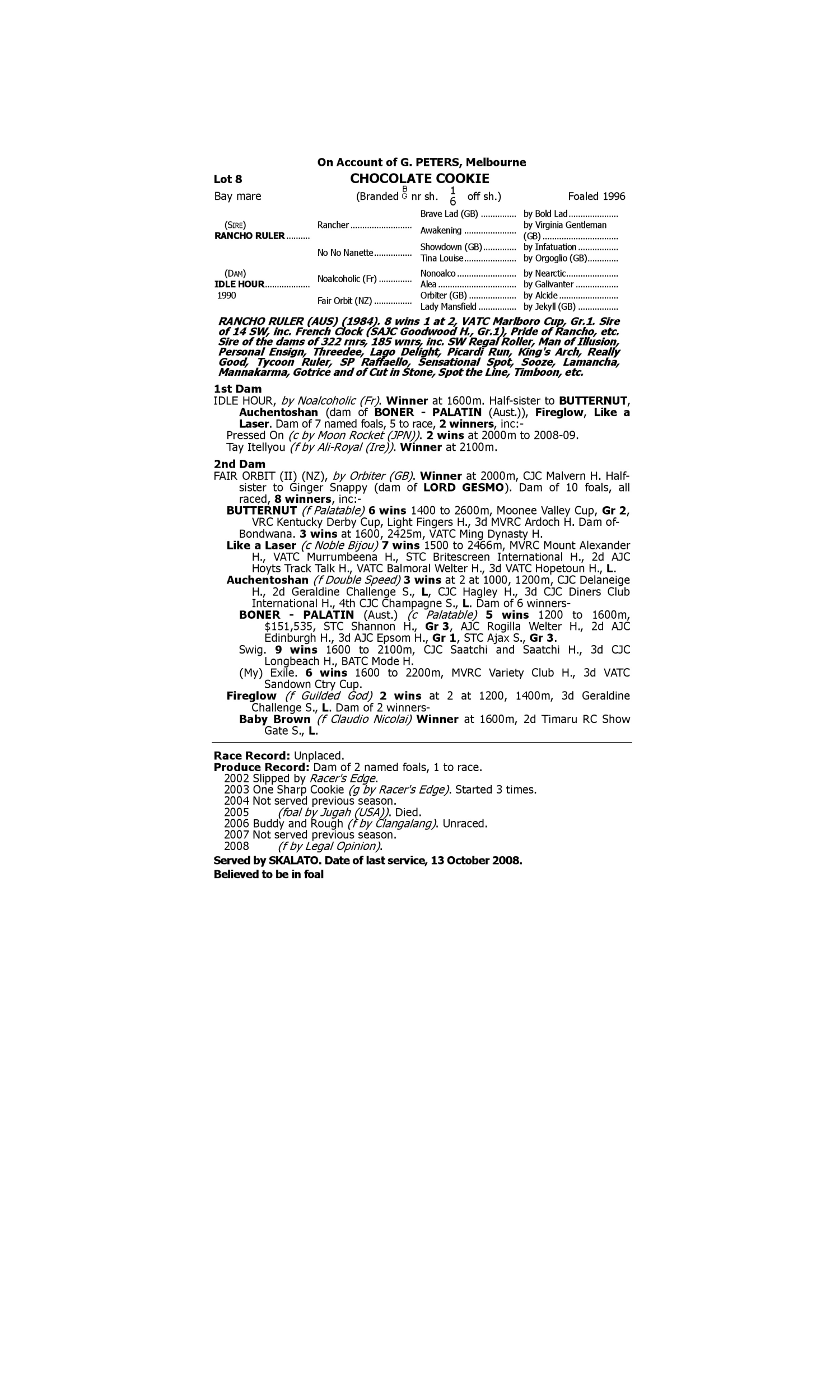 Liberty's Way (2005.f. by Statue of Liberty-Lady's Way, by Majuscule-Northwood Manner). 1st Bendigo JC Keech Castings Maiden P. Northwood Lass (2005.f. by Dolphin Street-Sentiment, by Last Tycoon-Lady's Way). 1st Wimmera RC Tooheys Extra Dry Maiden P.