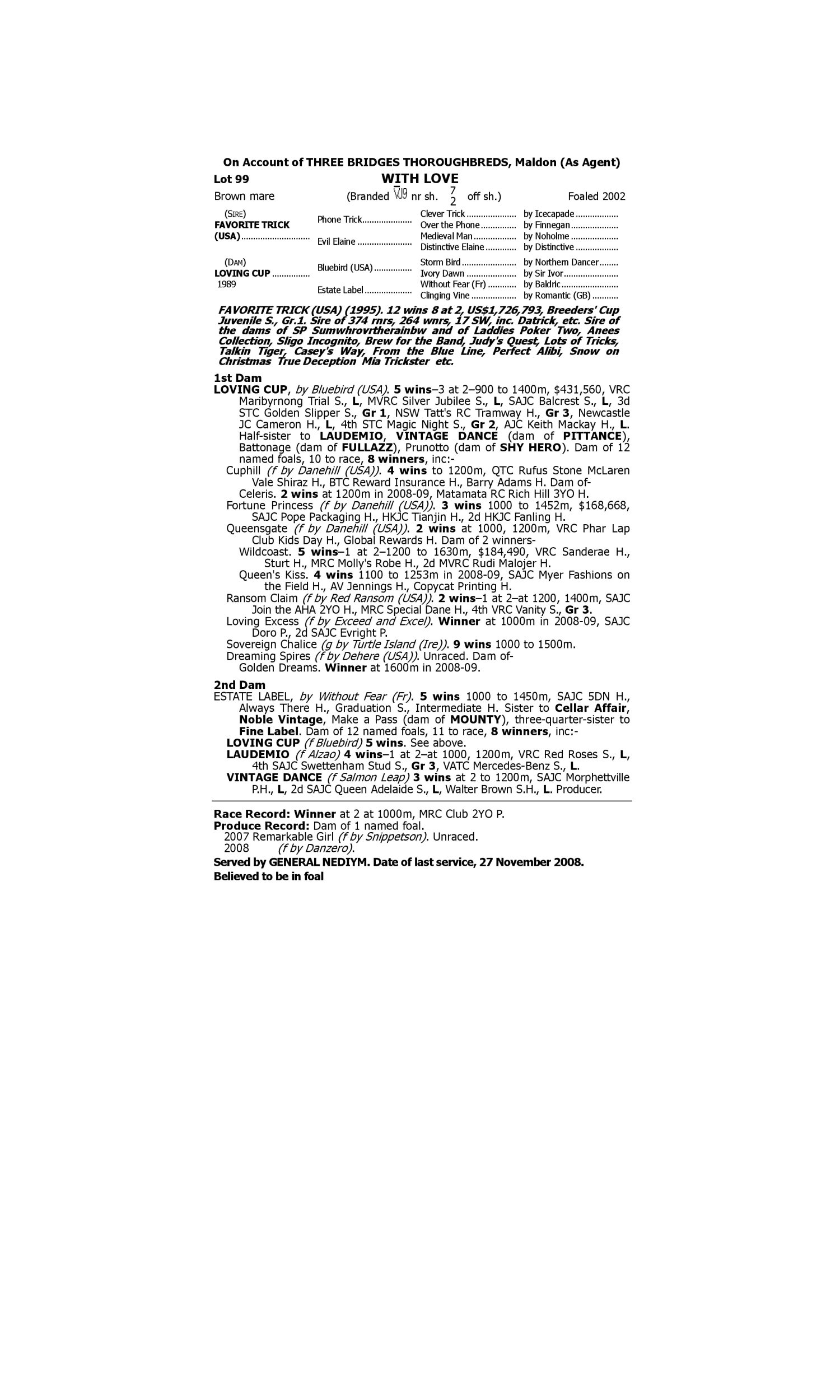 Jollica (2005.f. by Dehere-Myamble, by Sir Dapper-Paris Miss). 1st Illawarra TC Sutherland Tile Supplies T Berry Maiden H. Exam (2003.g. by Carnegie-Ateates, by Zeditave-Paris Miss). 1st Rockhampton JC Wilpeena Cattle Co H. Shinko Attack (2001.g. by Shinko Forest-Torelgo, by Zeditave-Paris Miss). 1st Gunnedah JC Taylor Ford H.