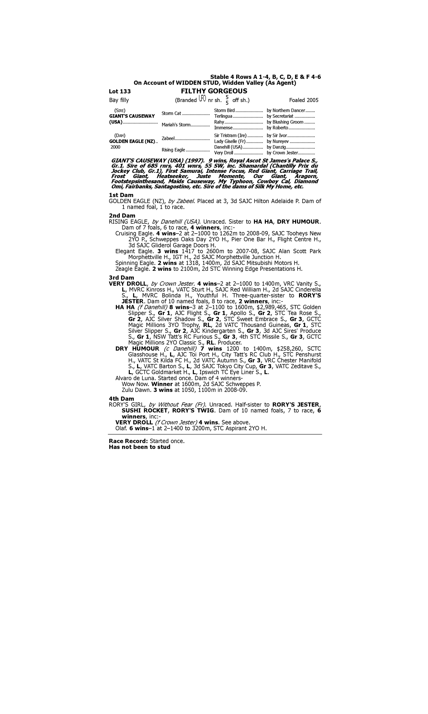 BERINGOER (2003.g. by Bering-Charmgoer, by Nureyev-Partygoer). 1st Chatillon-sur-Chalaronne Prix de Jonage Belial (2005.f. by Dubai Dust-Jackie O., by Trempolino-Periapt). 1st MaroƱas Premio Avon Park (2006) HUNTING TOWER (2002.g. by Fort Wood-Stirrup Cup, by Royal Chalice-Michabo). 2nd Nad al Sheba Al Fahidi Fort S. Gr.2 Shining Sea (2005.f. by Stormy Atlantic-Golden West, by Gone West-Fineza). 3rd Aqueduct Am Capable S. L