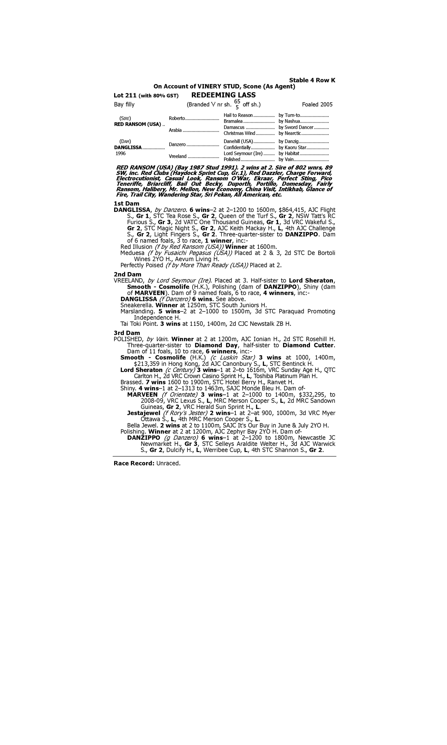 Lot 210 has pedigree updates since the release of the catalogue.