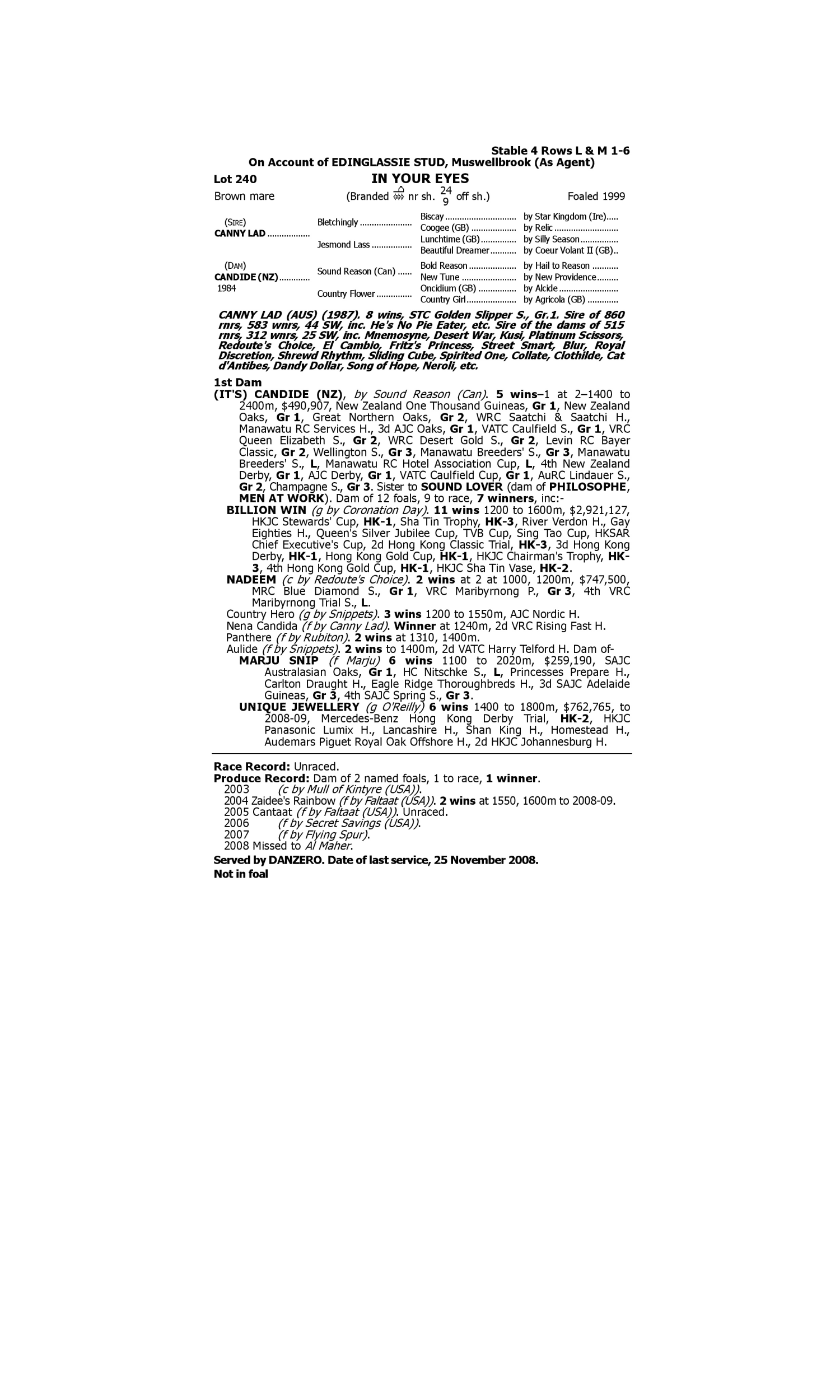 CASINO DRIVE (2005.c. by Mineshaft-Better Than Honour, by Deputy Minister-Blush With Pride). 2nd Tokyo February S. Gr.1 WHAT A PEAR (2006.f. by E Dubai-Perfect Pear, by Pine Bluff-Perfect Isn't Easy). 1st Aqueduct Busher S. L Desejada Normand (2006.f. by Roi Normand-Super Desejada, by Mensageiro Alado-Miss Malta). 2nd Gavea Clássico Luiz Alves de Almeida L Gathering (2006.c. by Tale of the Cat-Celebria, by Peintre Celebre-Twyla). 3rd VRC Sires' Produce S. Gr.2 STRIKING TOMISUE (2004.f. by Smart Strike-Avenging Tomisue, by Belong to Me-Tomisue's Indy). 1st Tampa Bay Wayward Lass S. L QUE FELICIDAD (2004.f. by Bernstein-Queen Tango, by Lode-Queen Mambo). 2nd San Isidro Clasico General Viamonte Gr.3