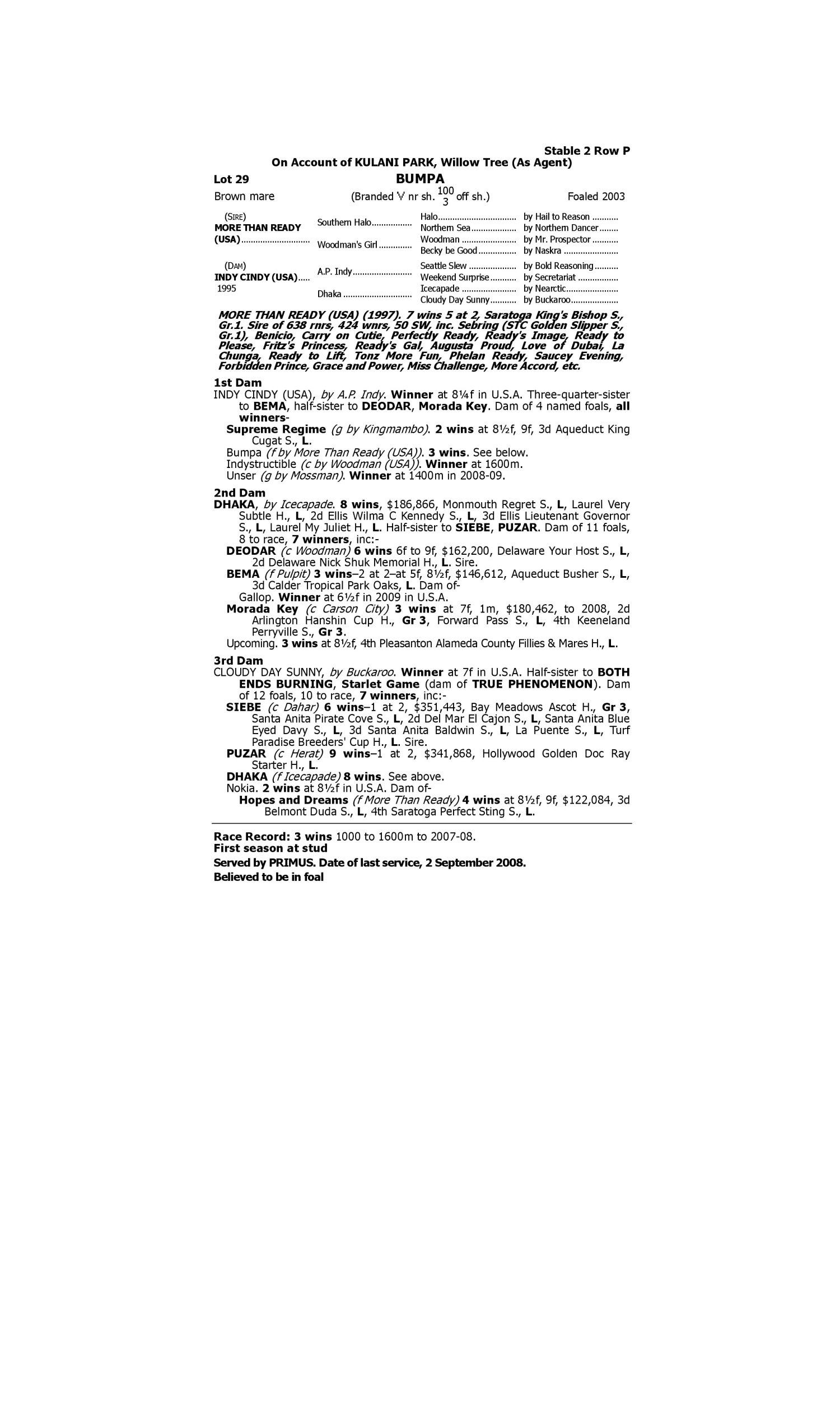 Lot 28 has pedigree updates since the release of the catalogue.