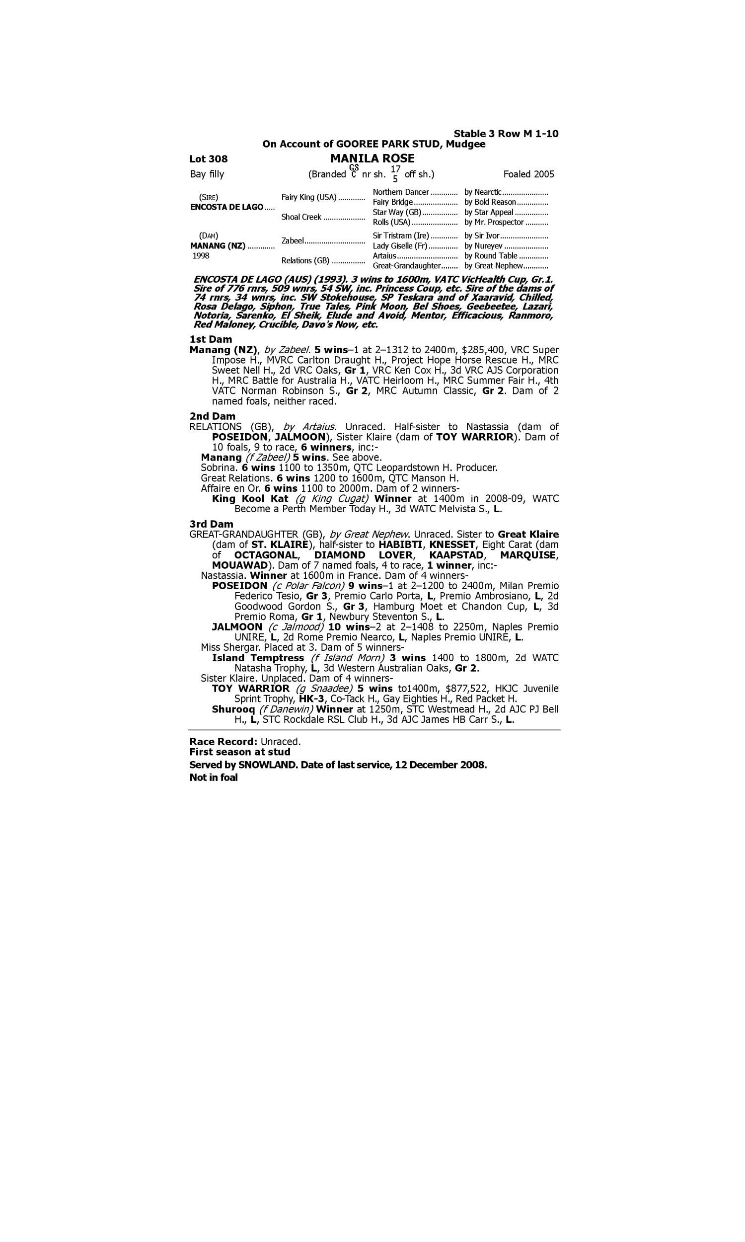 Pedigree for Lot 307 Zabeel (NZ) - Relations (GB)