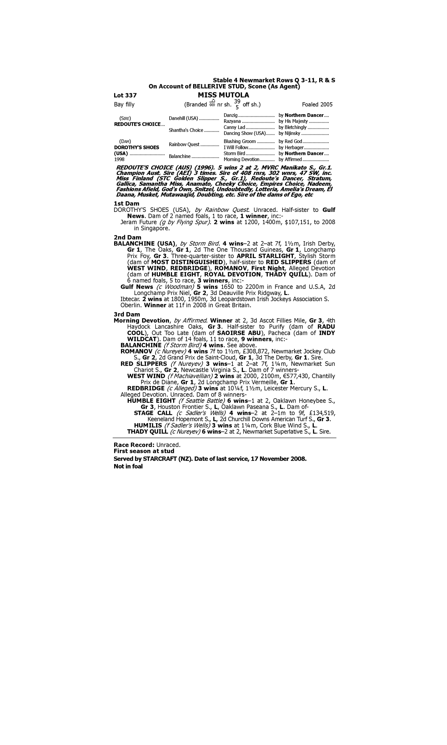 Pedigree for Lot 336 Kingmambo (USA) - Don't Joke (USA)