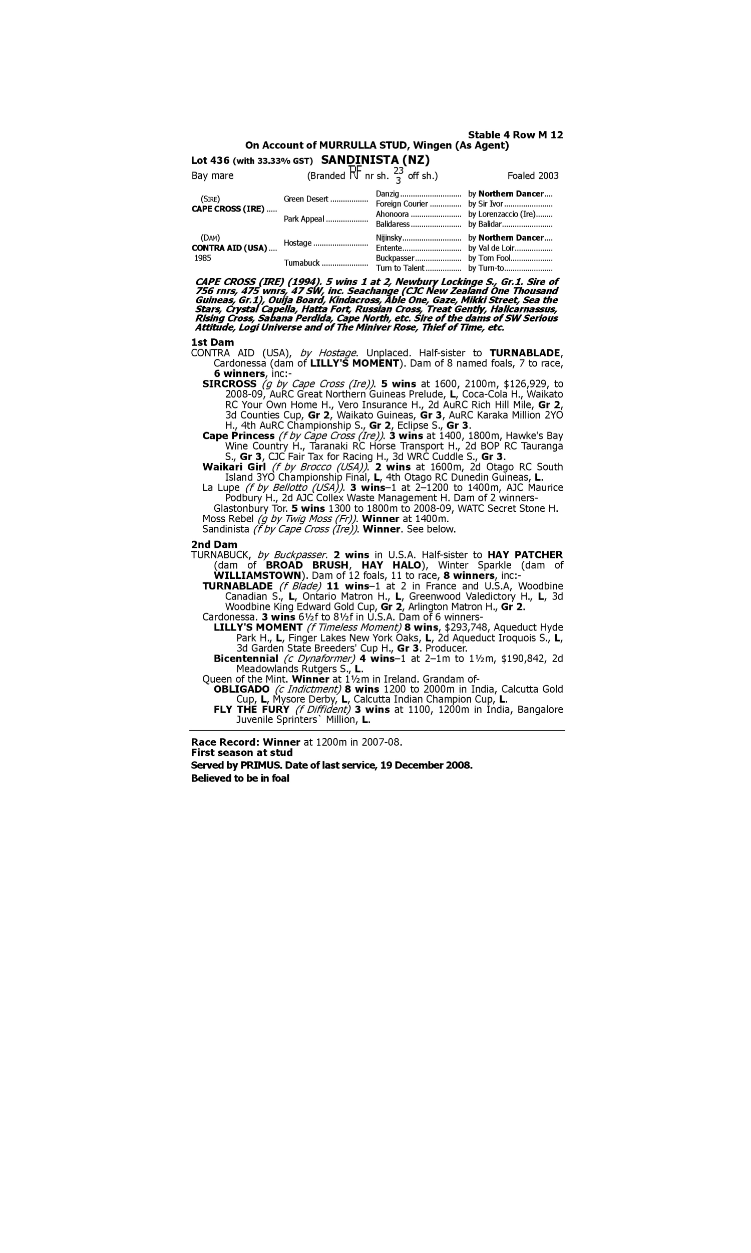 Ariem (2004.g. by Encosta de Lago-Close Your Eyes, by Geiger Counter-Just a Flyer). 2nd Singapore TC Graduation H. Dismiss (2005.f. by Viscount-Close Your Eyes, by Geiger Counter-Just a Flyer). 3rd AJC Tycoon Lil H. Punctilio (2003.g. by Galileo-Close Your Eyes, by Geiger Counter-Just a Flyer). 2nd Hawkesbury RC William Inglis and Son Maiden H. Way North (2004.f. by Hussonet-Just a Flyer, by Bluebird-Just Now). 1st Ipswich TC Qld Heritage Masonry Maiden P.