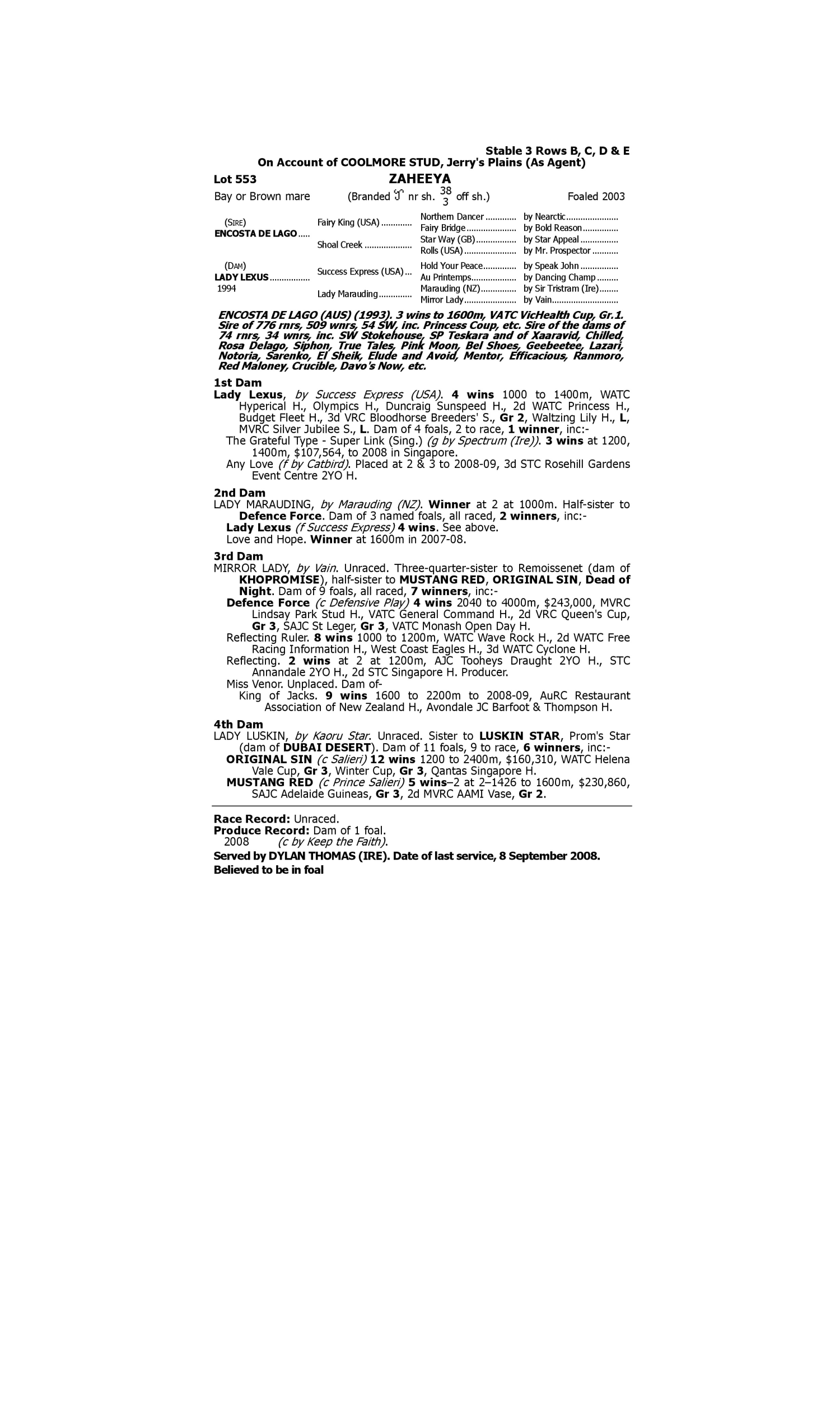 Lot 552 has pedigree updates since the release of the catalogue.