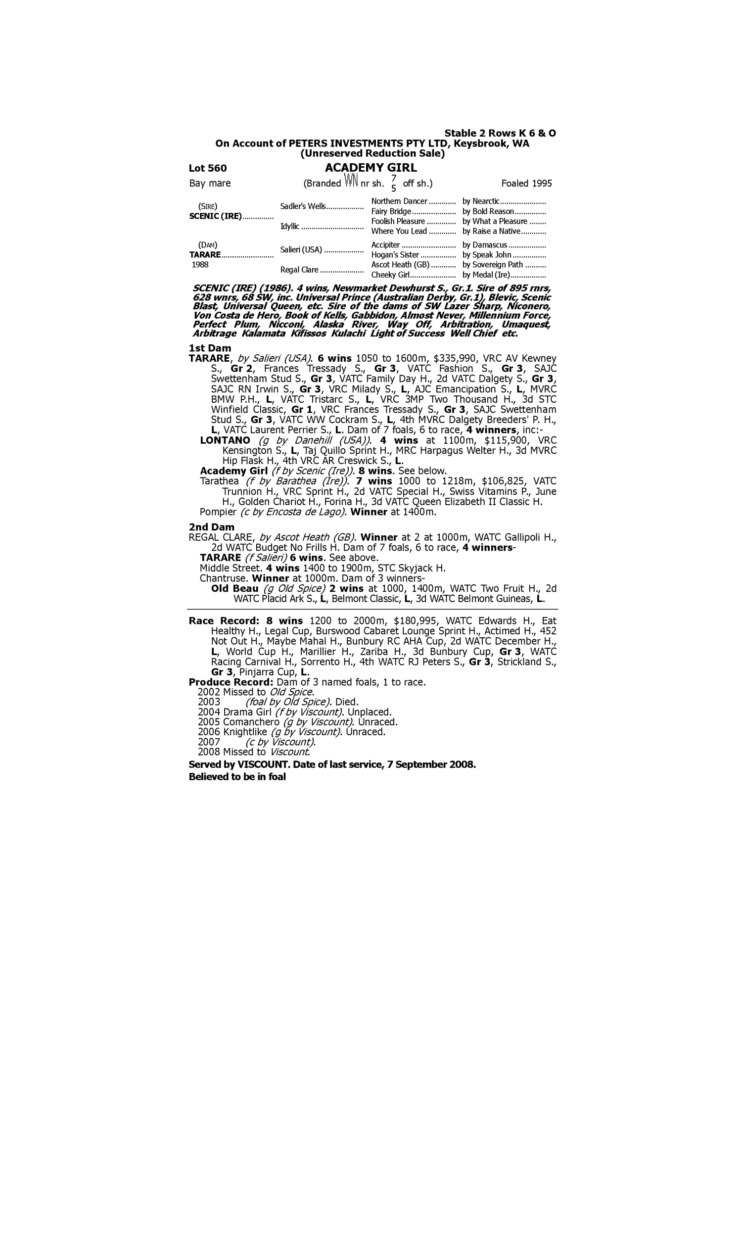 Lot 559 has pedigree updates since the release of the catalogue.