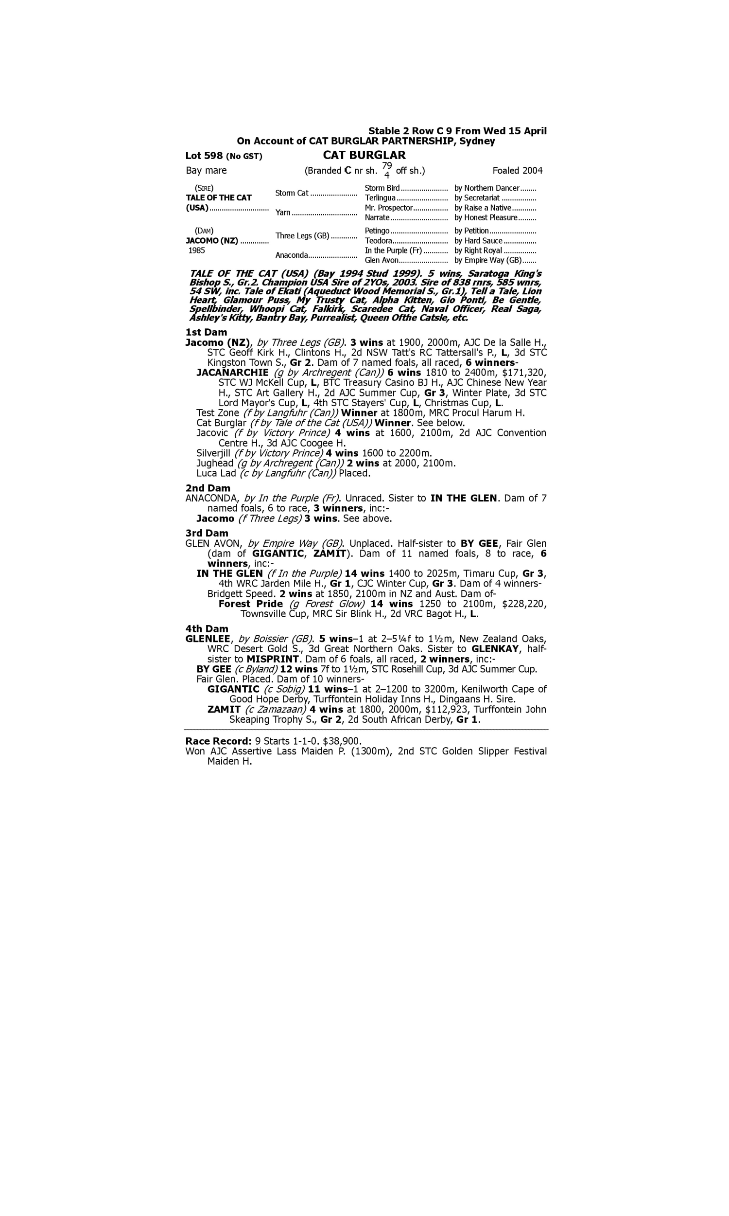 Lot 597 has pedigree updates since the release of the catalogue.