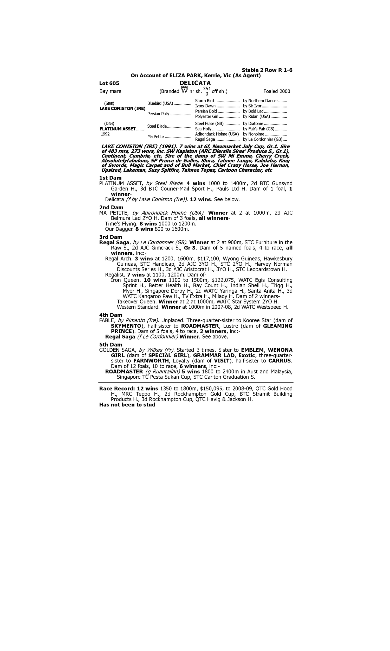 Pedigree for Lot 604 Lake Coniston (IRE) - Scenic Sensation
