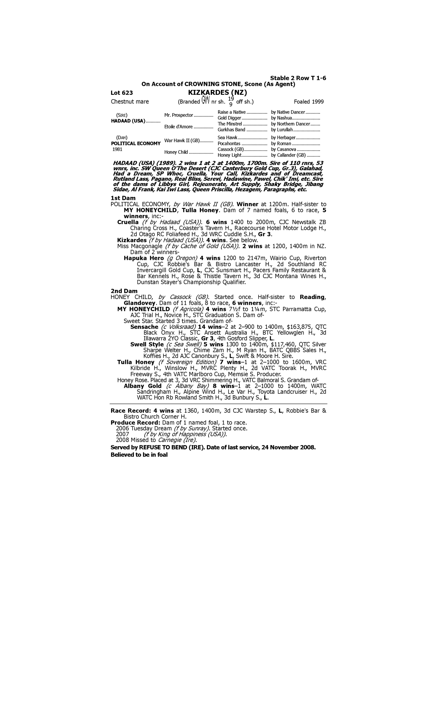 Lot 622 has pedigree updates since the release of the catalogue.