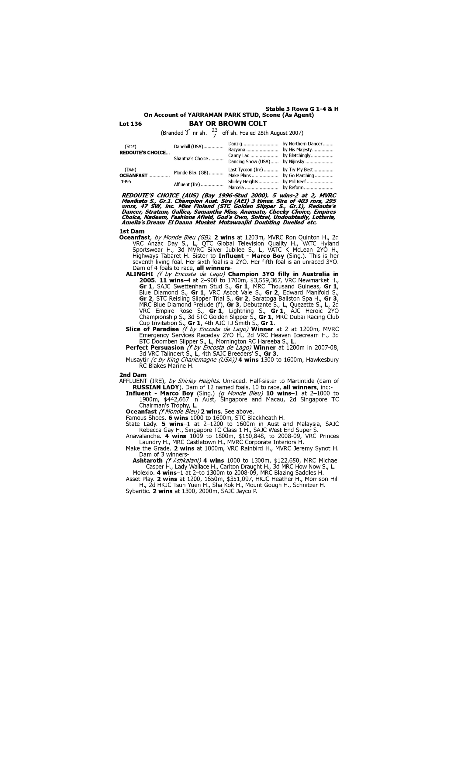 Lot 135 has pedigree updates since the release of the catalogue.