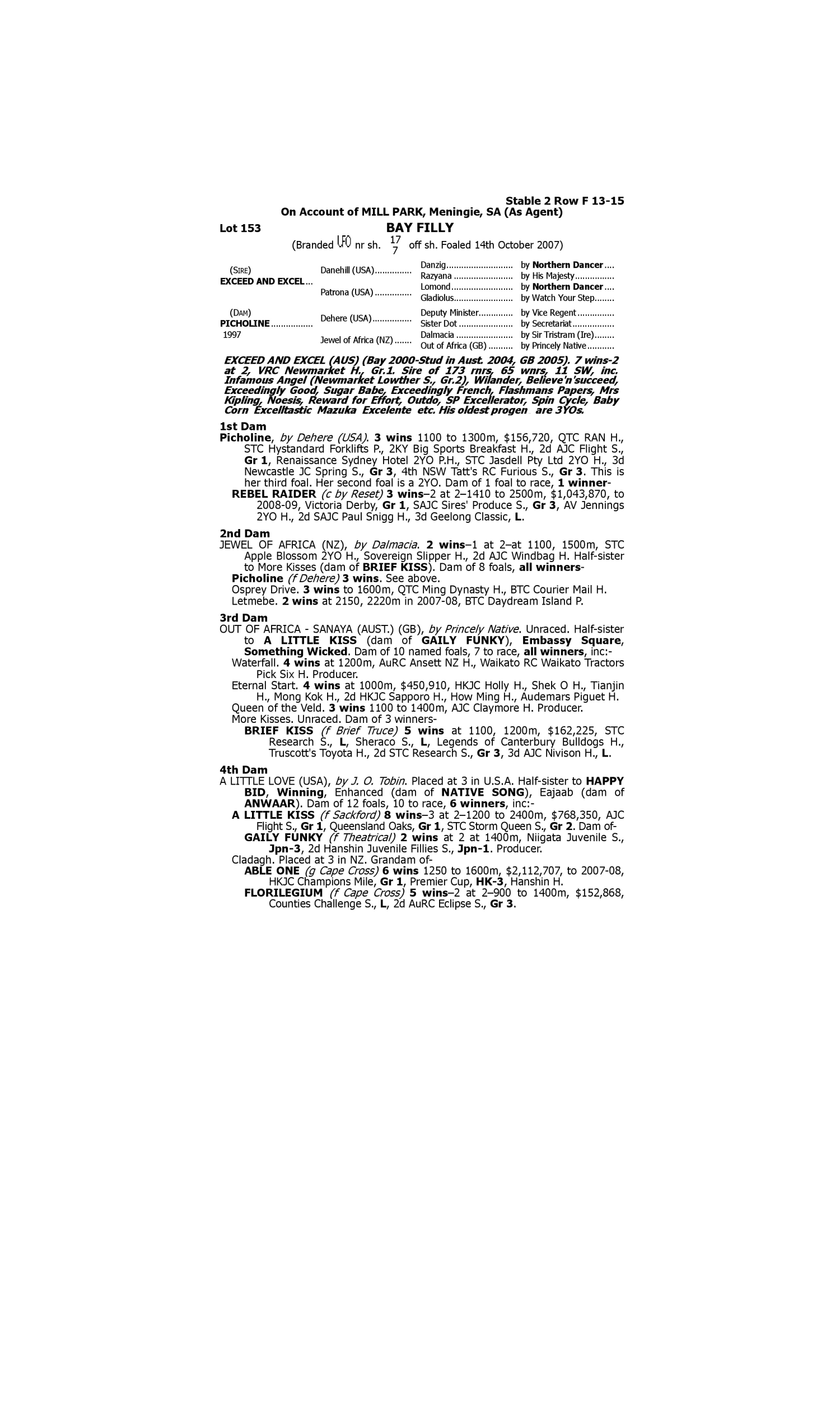 Lot 152 has pedigree updates since the release of the catalogue.