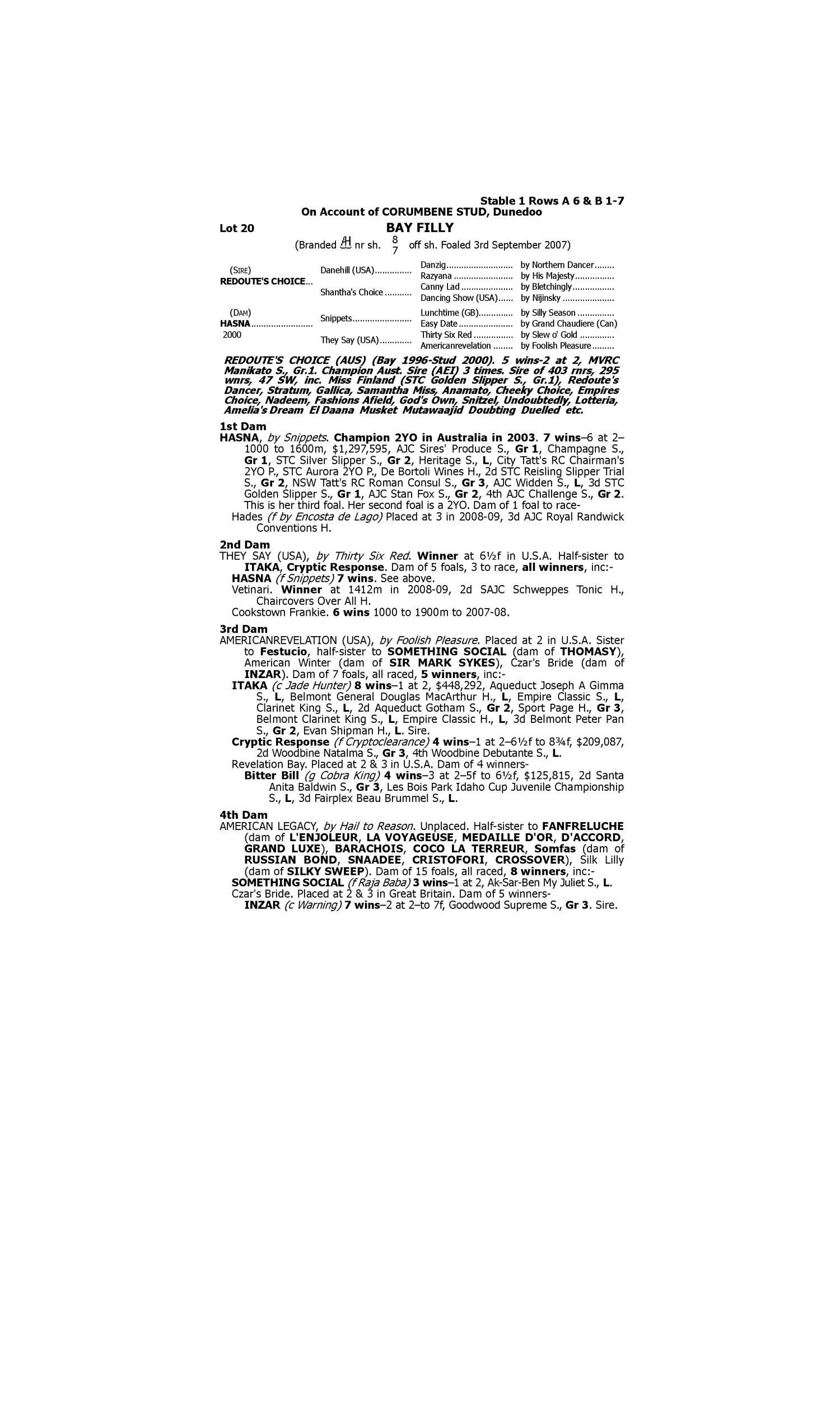 Lot 19 has pedigree updates since the release of the catalogue.