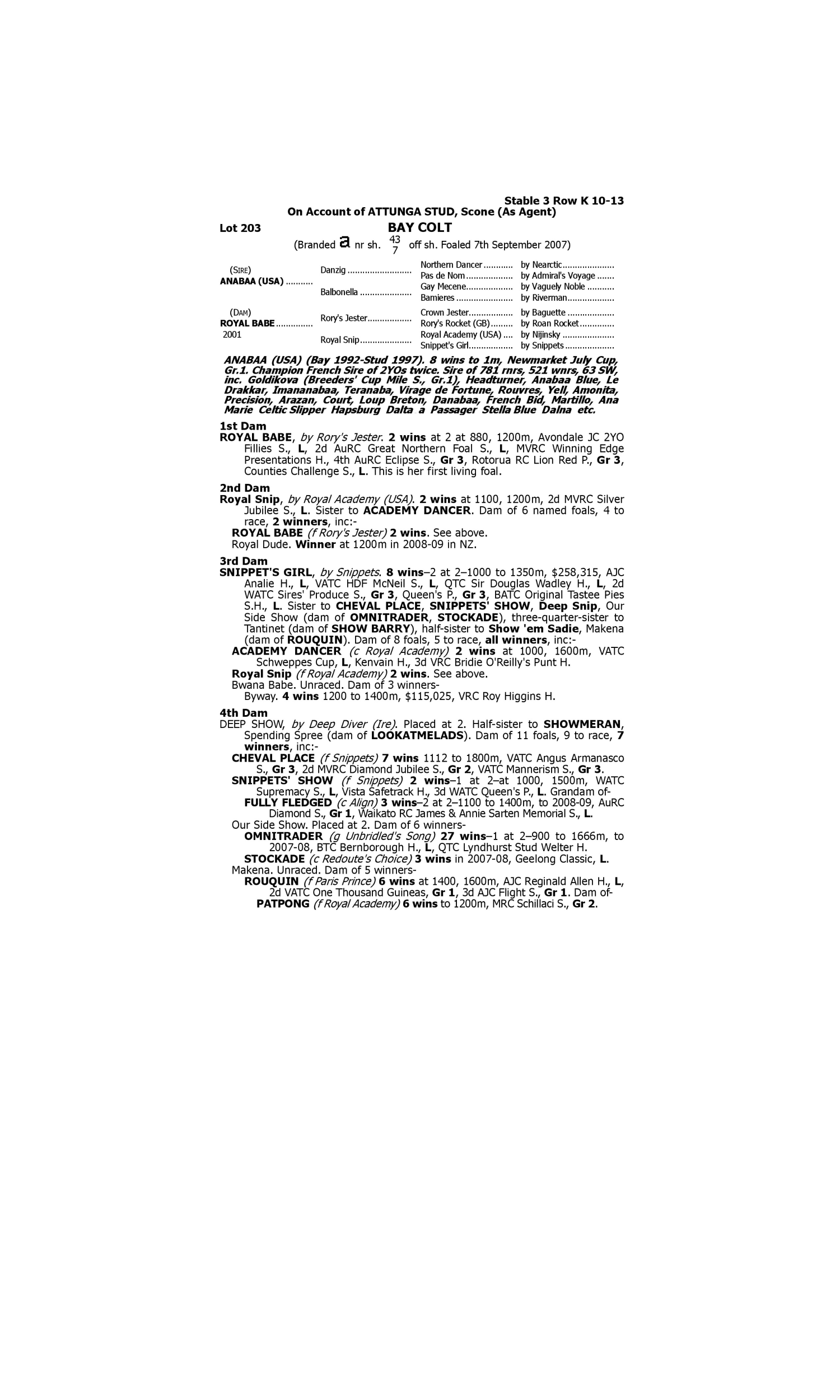 Pedigree for Lot 202 Starcraft (NZ) - Rose of Portland (USA)