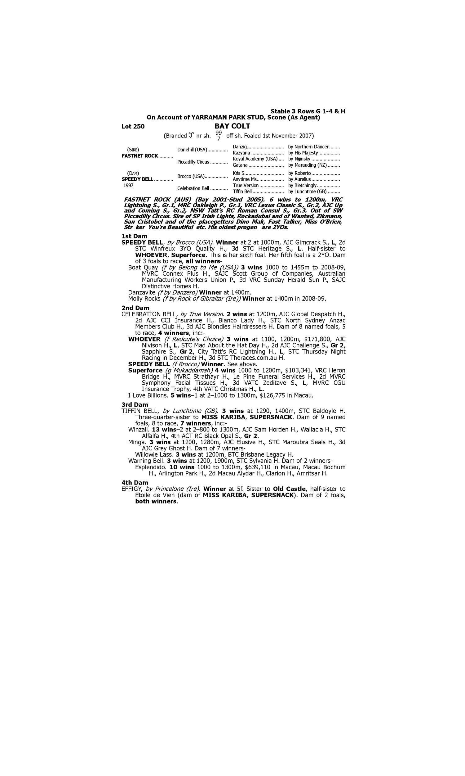 Little Surfer Girl (2006.f. by Encosta de Lago-Special Harmony, by Spinning World-Marooned Lady). 3rd STC Madura Earl Grey Tea H. REPRISAL (2005.g. by Galileo-Gambei, by Dehere-Marooned Lady). 2nd Tasmanian Derby Gr.3 Hifalutin (2004.f. by Peintre Celebre-Gambei, by Dehere-Marooned Lady). 1st SAJC Mortgage Force 131497 H.