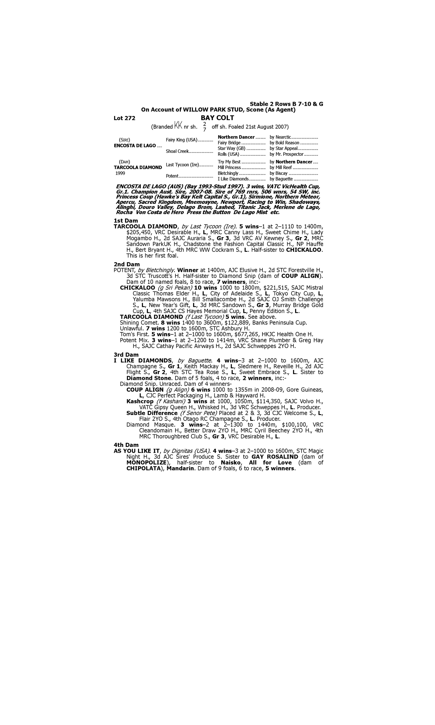 Lot 271 has pedigree updates since the release of the catalogue.