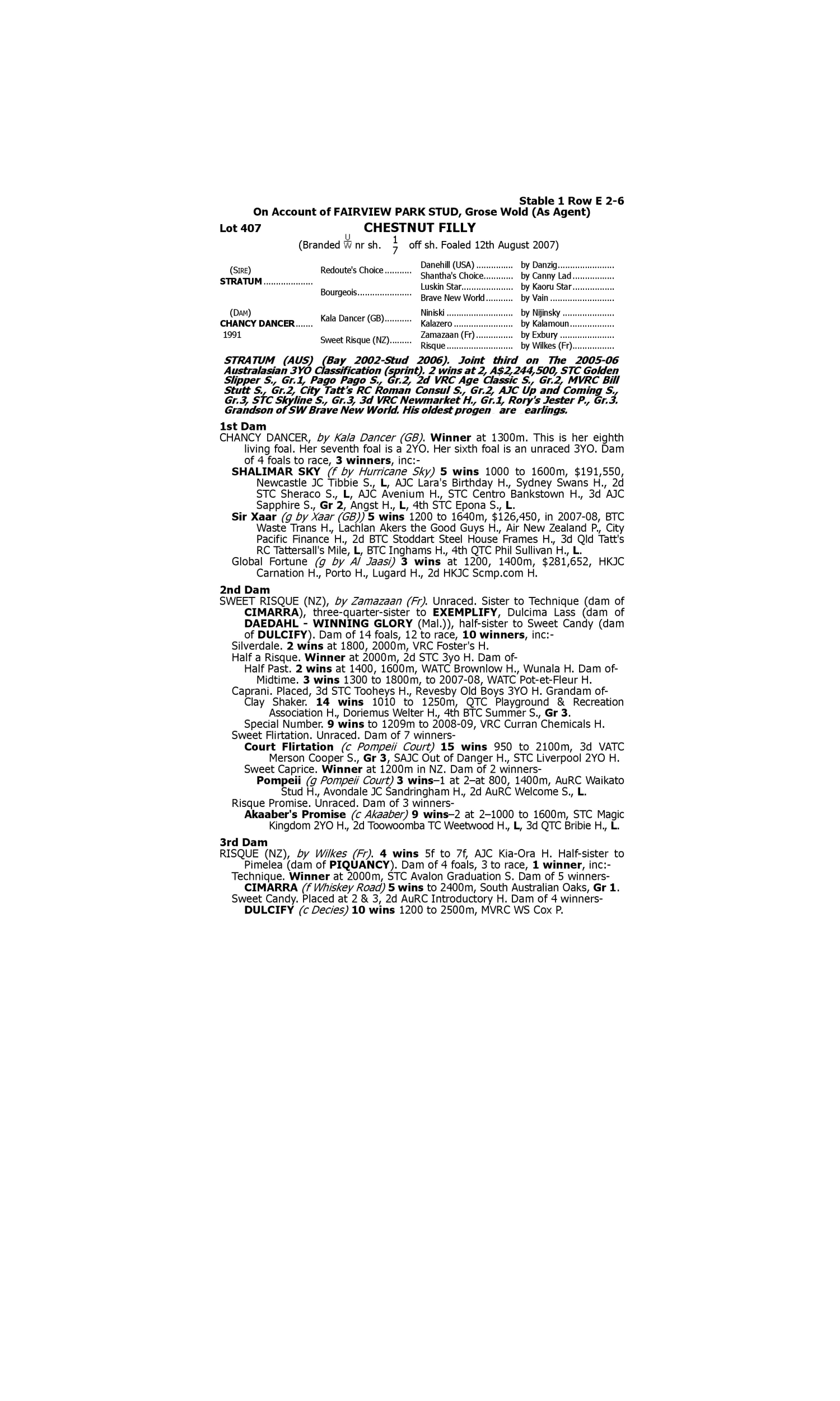 Pedigree for Lot 406 Redoute's Choice - Champagne (NZ)