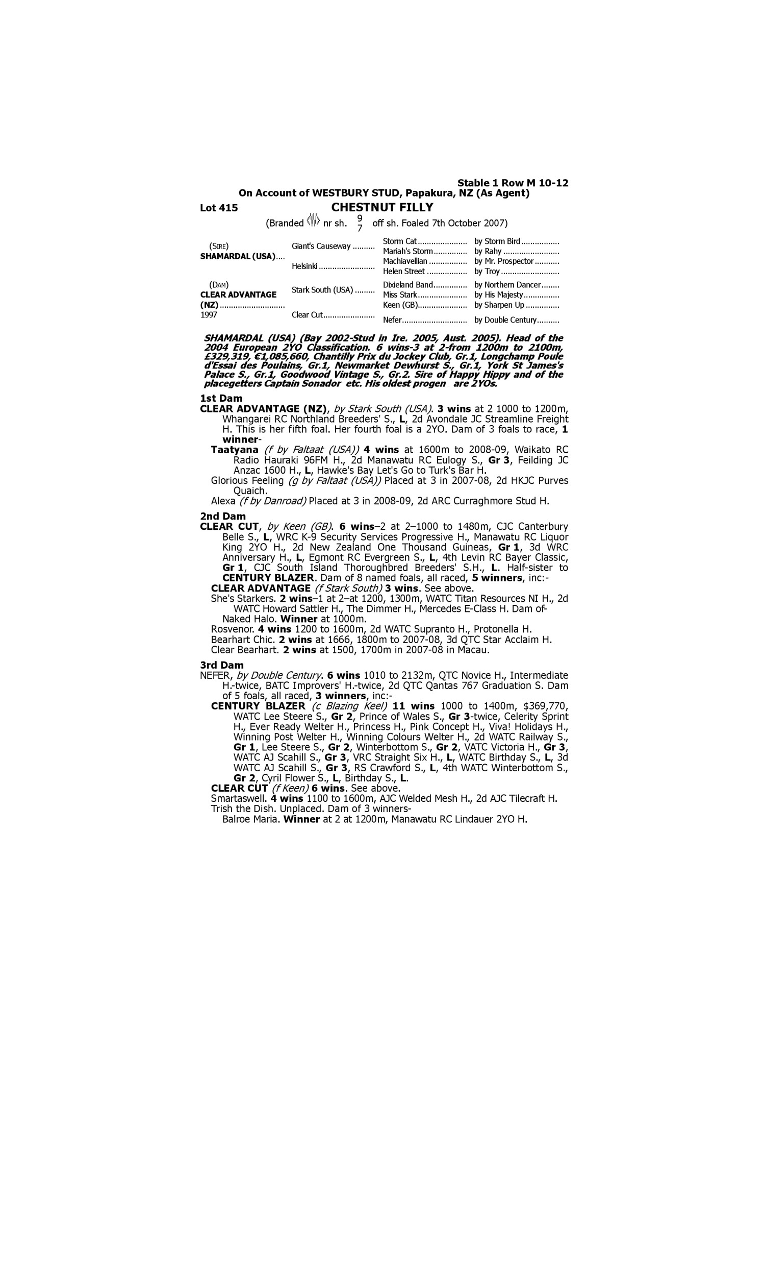 Pedigree for Lot 414 Redoute's Choice - Clean Sweep (NZ)