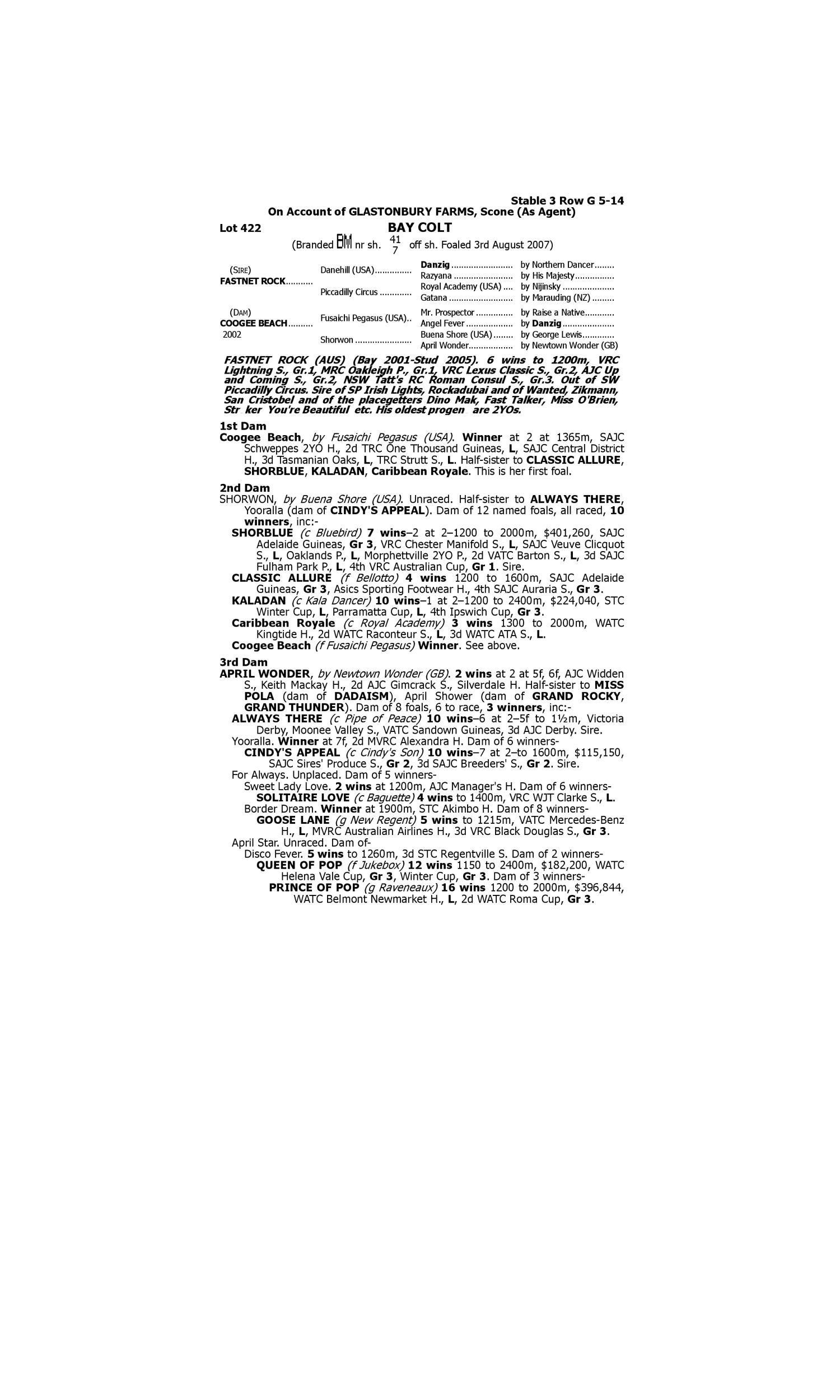 Lot 421 has pedigree updates since the release of the catalogue.