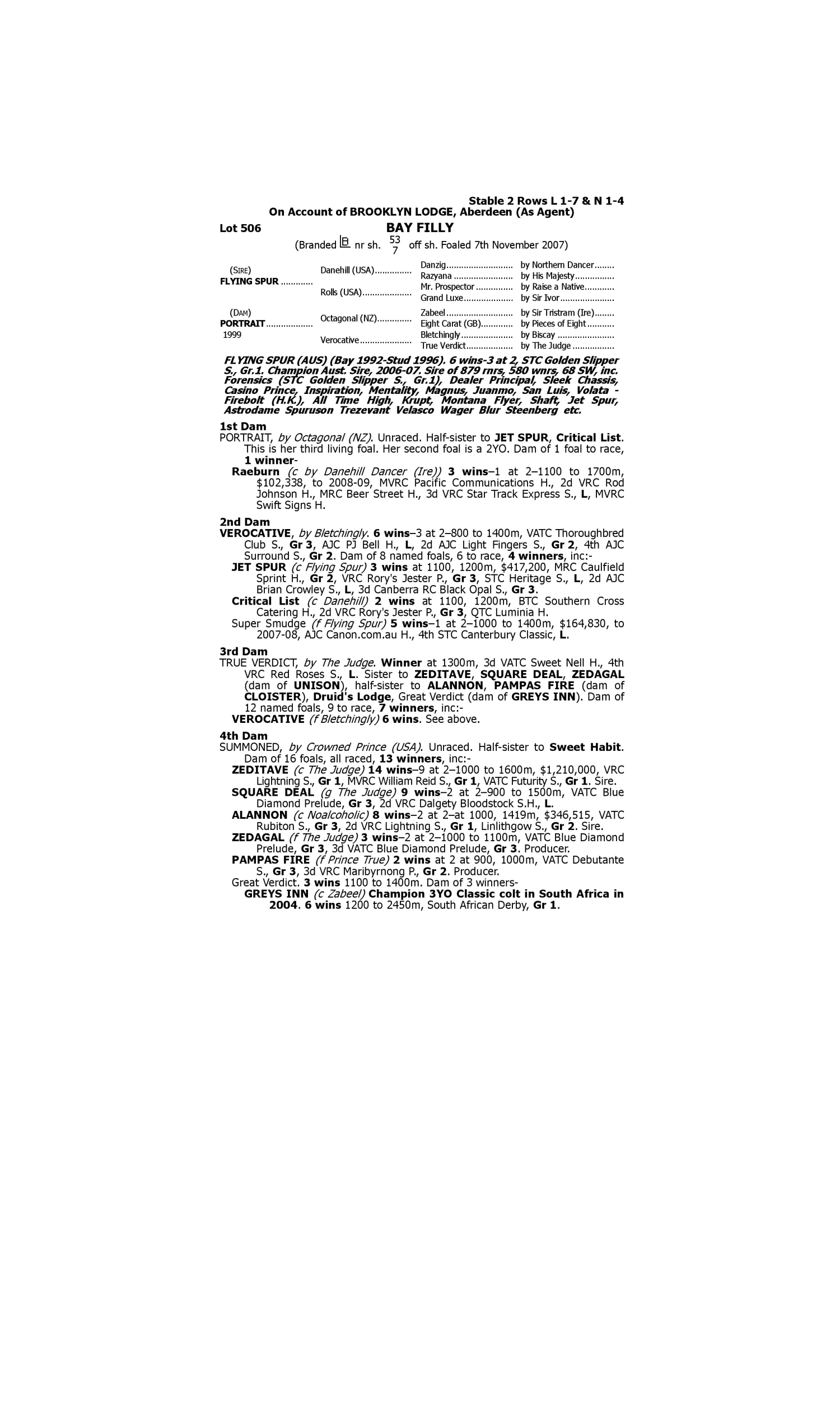 Lot 505 has pedigree updates since the release of the catalogue.