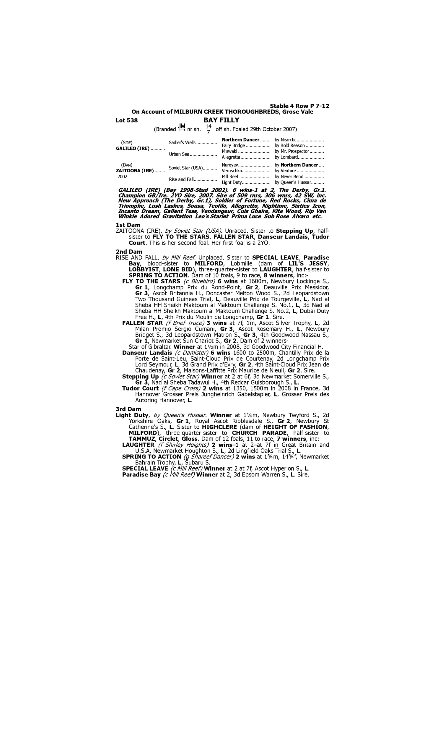 Lot 537 has pedigree updates since the release of the catalogue.
