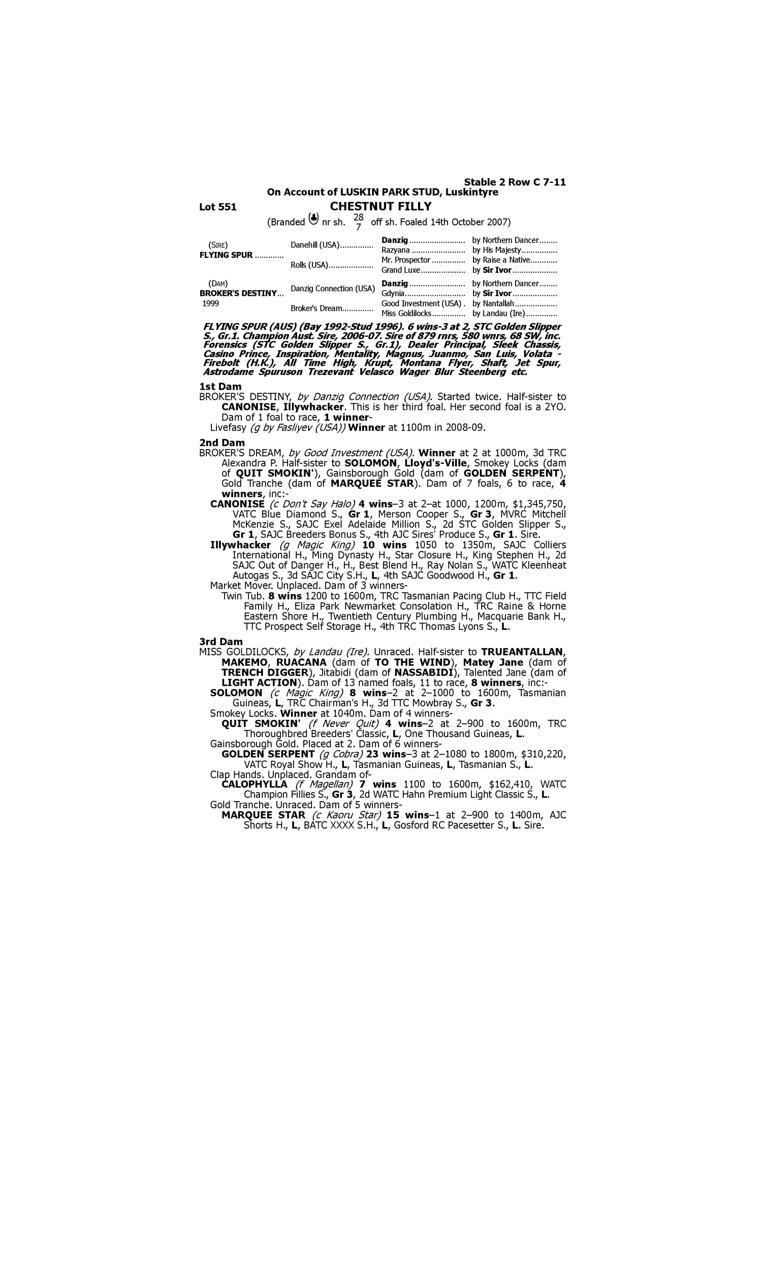 Baby Boom (2005.f. by Redoute's Choice-Boom, by Marauding-Sudden). 2nd Wyong RC Blue Group Projects Maiden P. Subreilly (2001.g. by O'Reilly-Subpoena, by Zeditave-Sudden). 1st Quirindi JC Julie Green R/E Lightning H. MISS PAVLOVA (2004.f. by Blevic-Sugarplum Fairy, by Western Symphony-Sucree Lady). 1st SAJC Lord Reims S. Gr.3