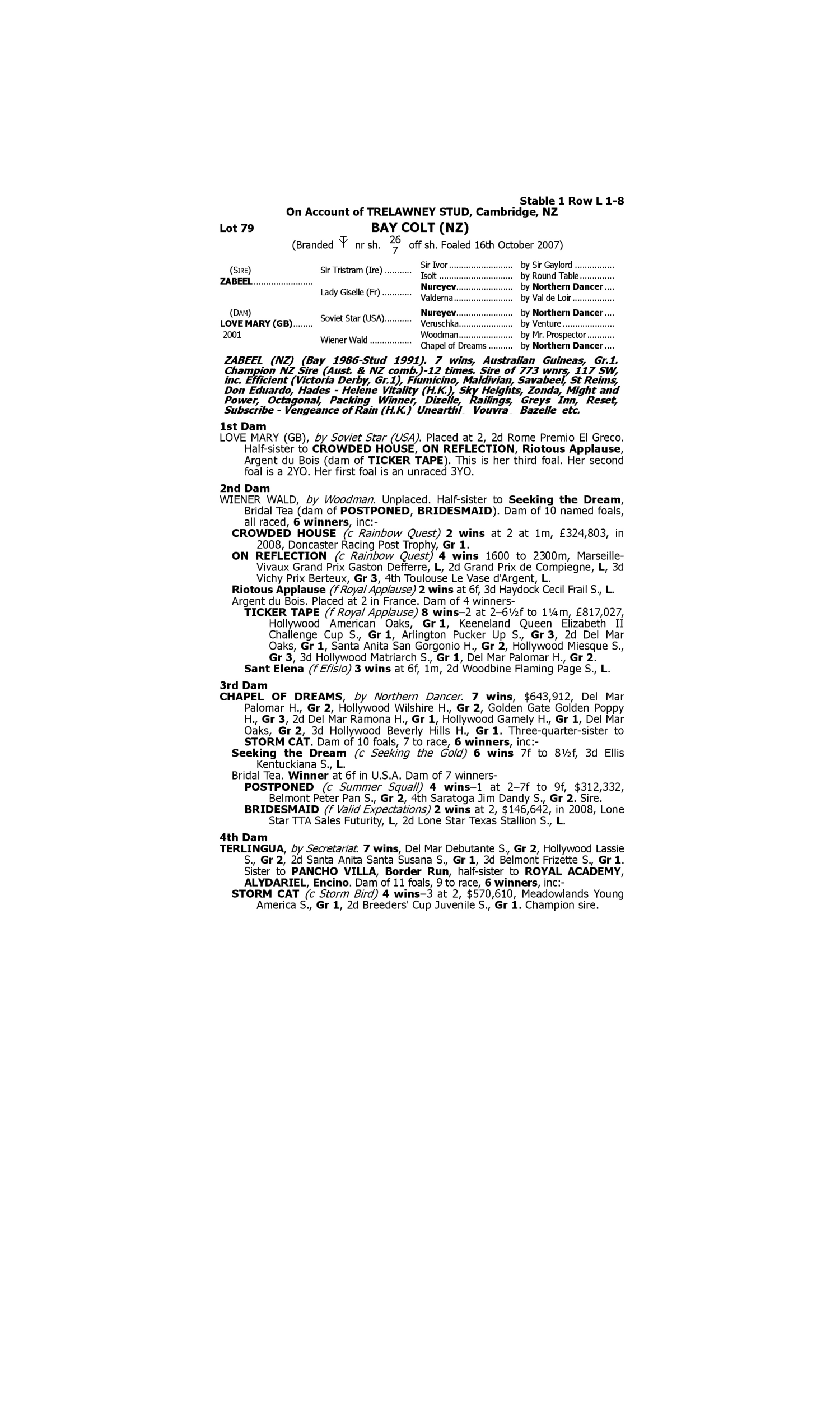Pedigree for Lot 78 Exceed and Excel - Love and Emotion