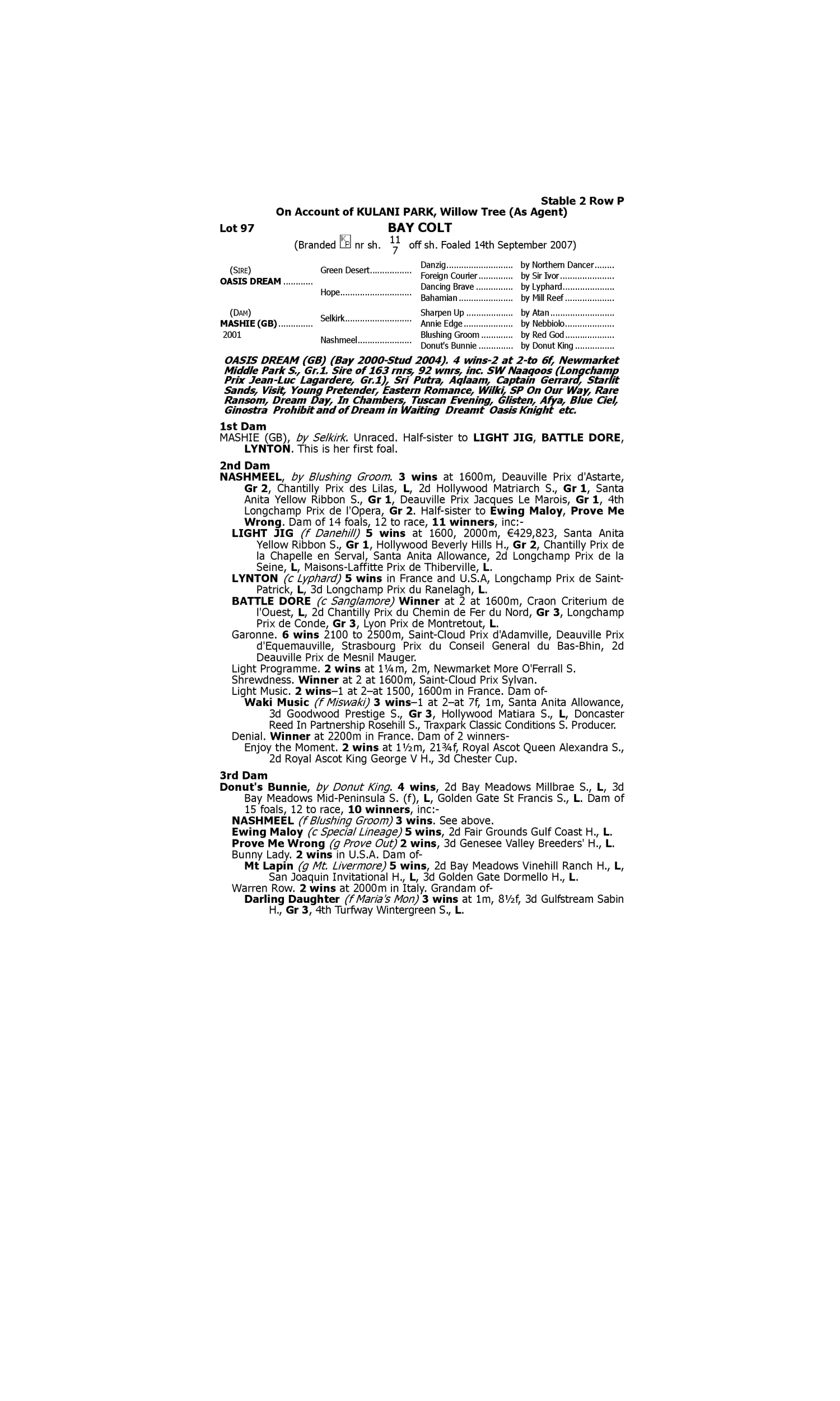 Lot 96 has pedigree updates since the release of the catalogue.