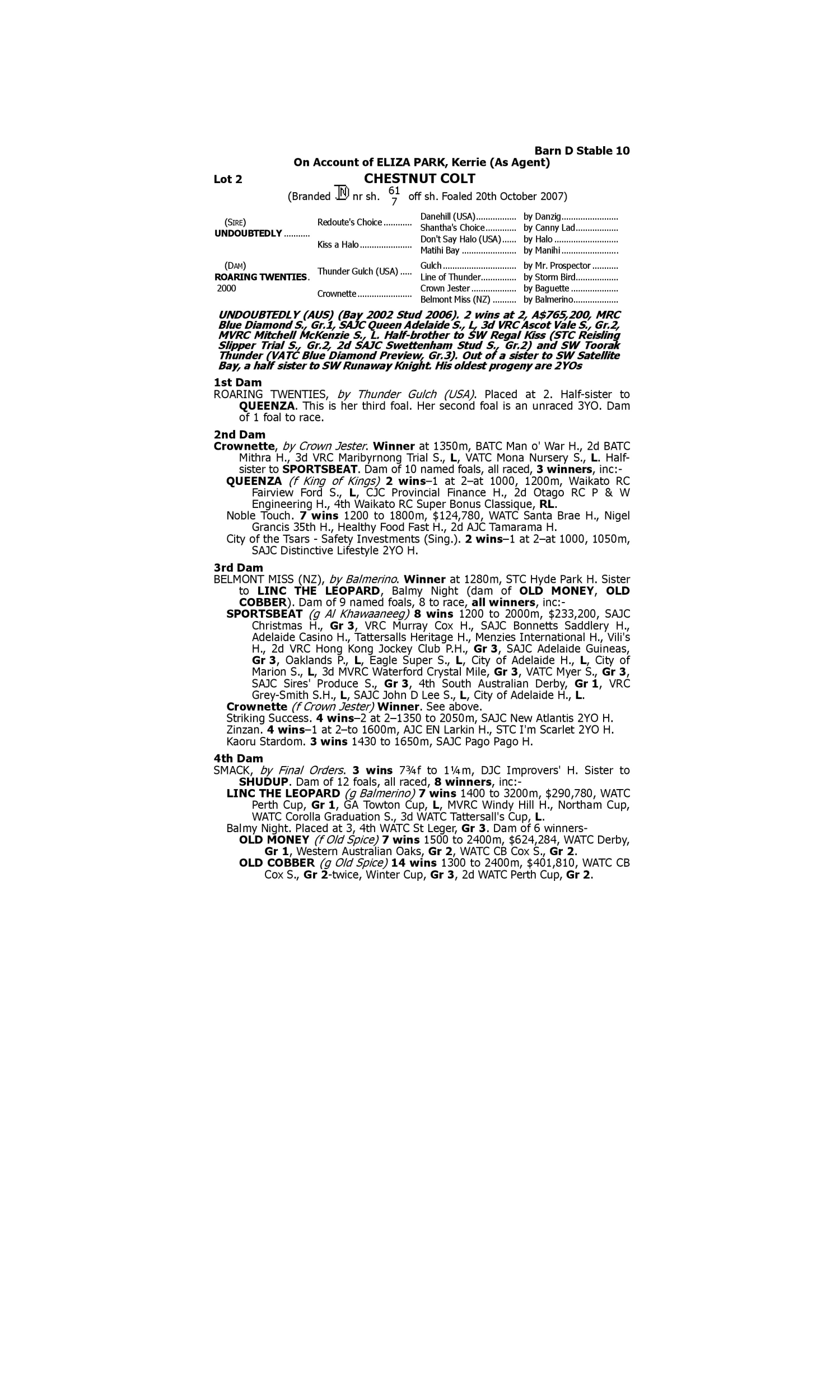 Lot 1 has pedigree updates since the release of the catalogue.