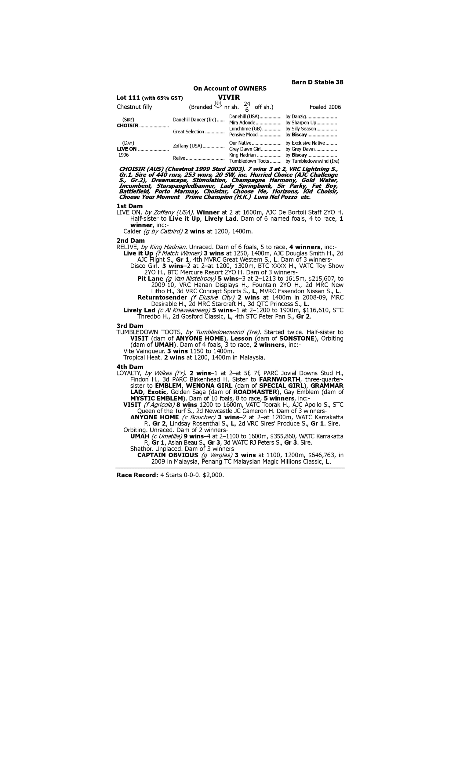 Lot 110 has pedigree updates since the release of the catalogue.