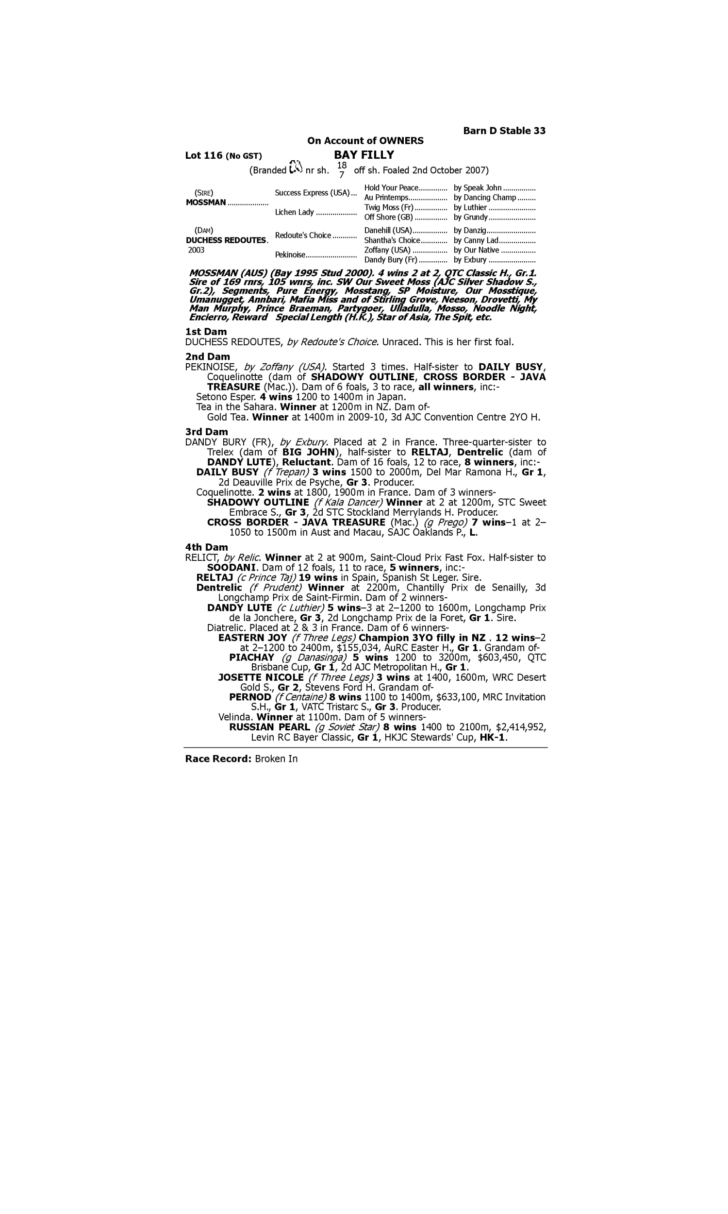 Emjay Hussey (2004.g. by Hussonet-Amaranth, by Flying Paster-Lucky Spell). 1st Sale TC Turnbull Toyota H. Flying Tessie (2005.f. by Testa Rossa-Paris Plaits, by Flying Spur-Amaranth). 1st VRC (Flemington) TAB Big 6 H. 1st Geelong RC Schweppes H. JORGE PRINCE (2007.c. by Solitary Vision-I'm Classified, by French Deputy-Foryoureyesonly). 2nd La Rinconada Clasico Albert H Cipriani L