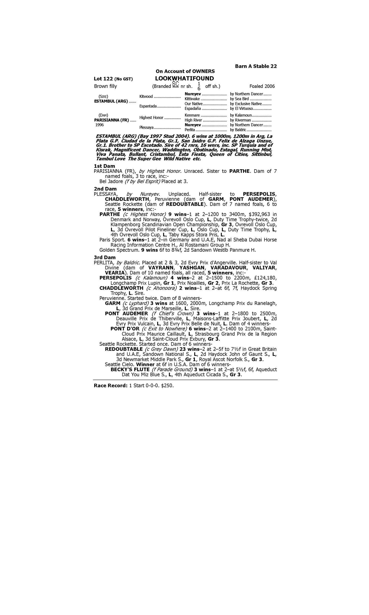 Pedigree for Lot 121 Perugino (USA) - Kingston Toy