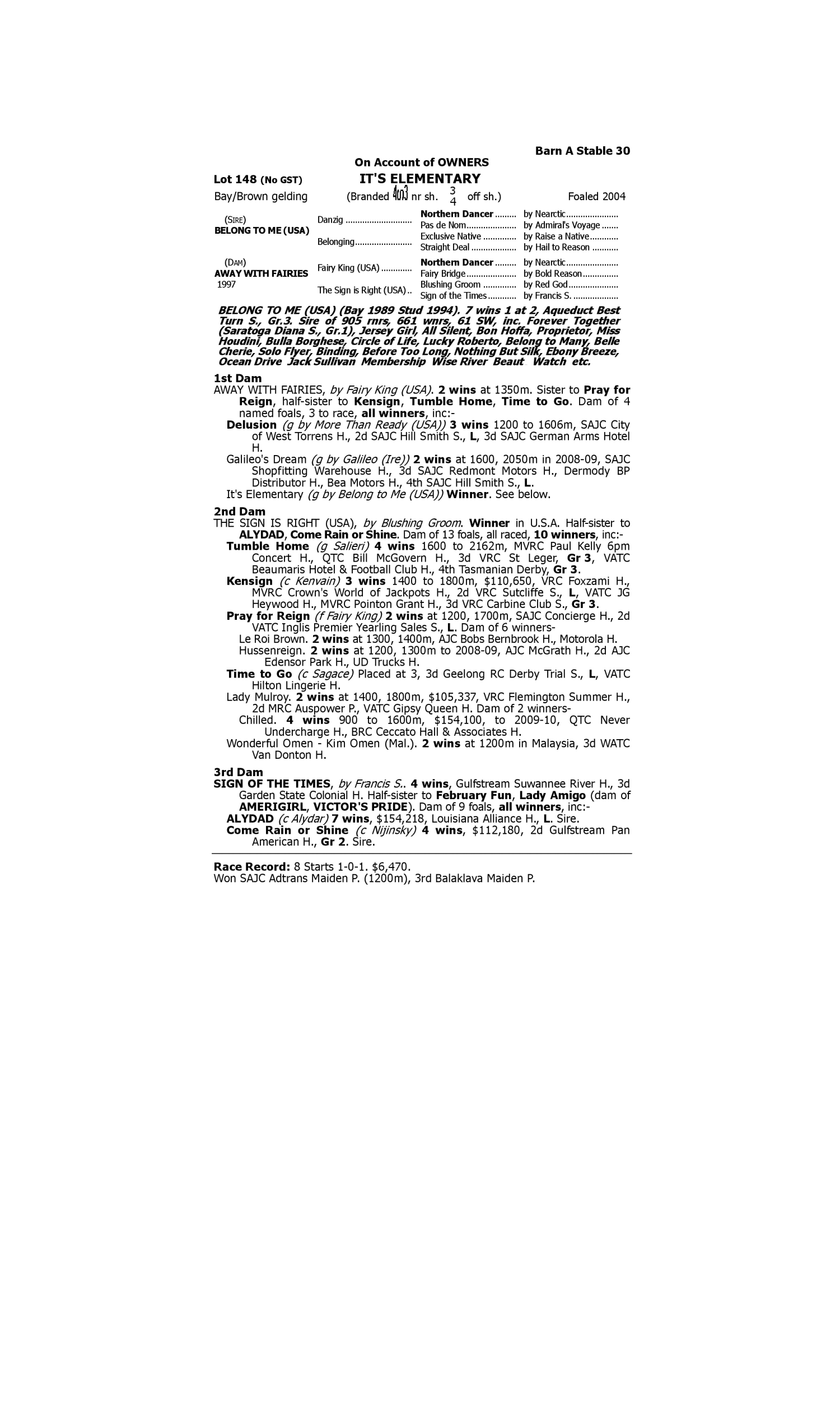Pedigree for Lot 147 Octagonal (NZ) - More Haste