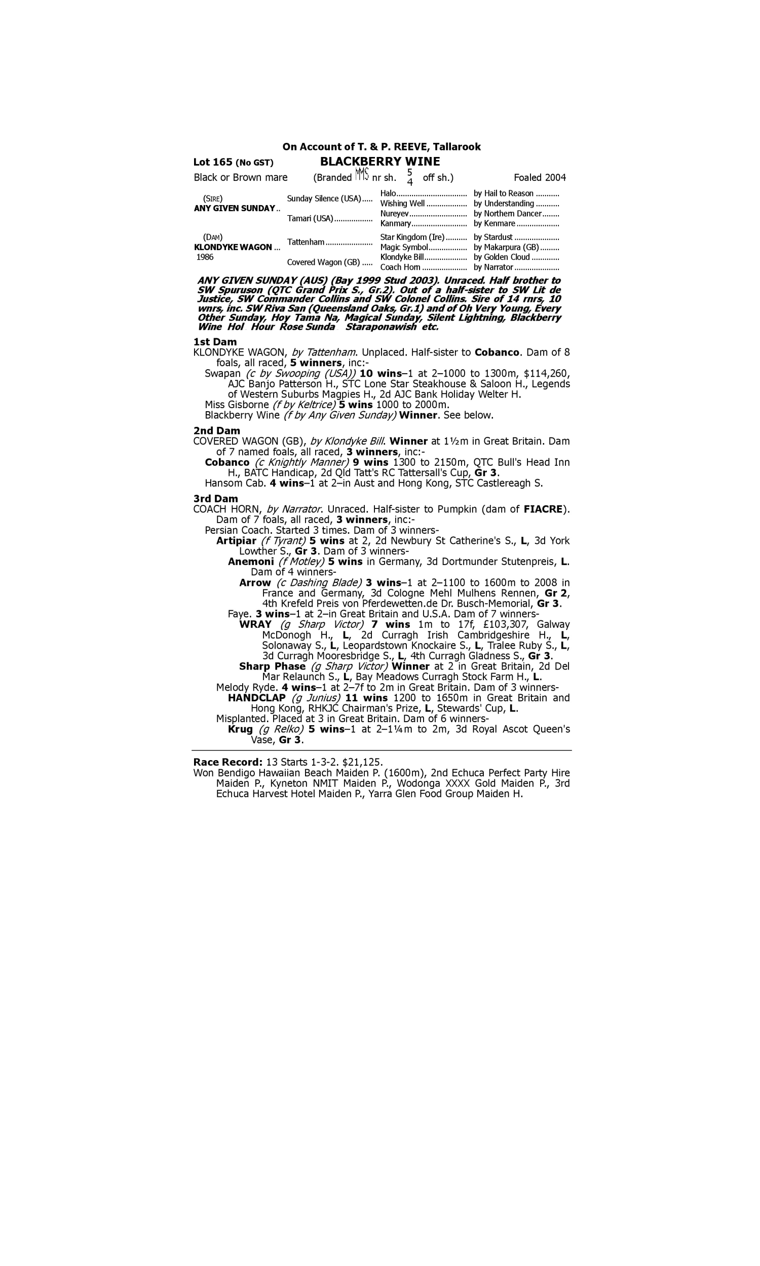 Pedigree for Lot 164 Dash for Cash - Blue Cafe