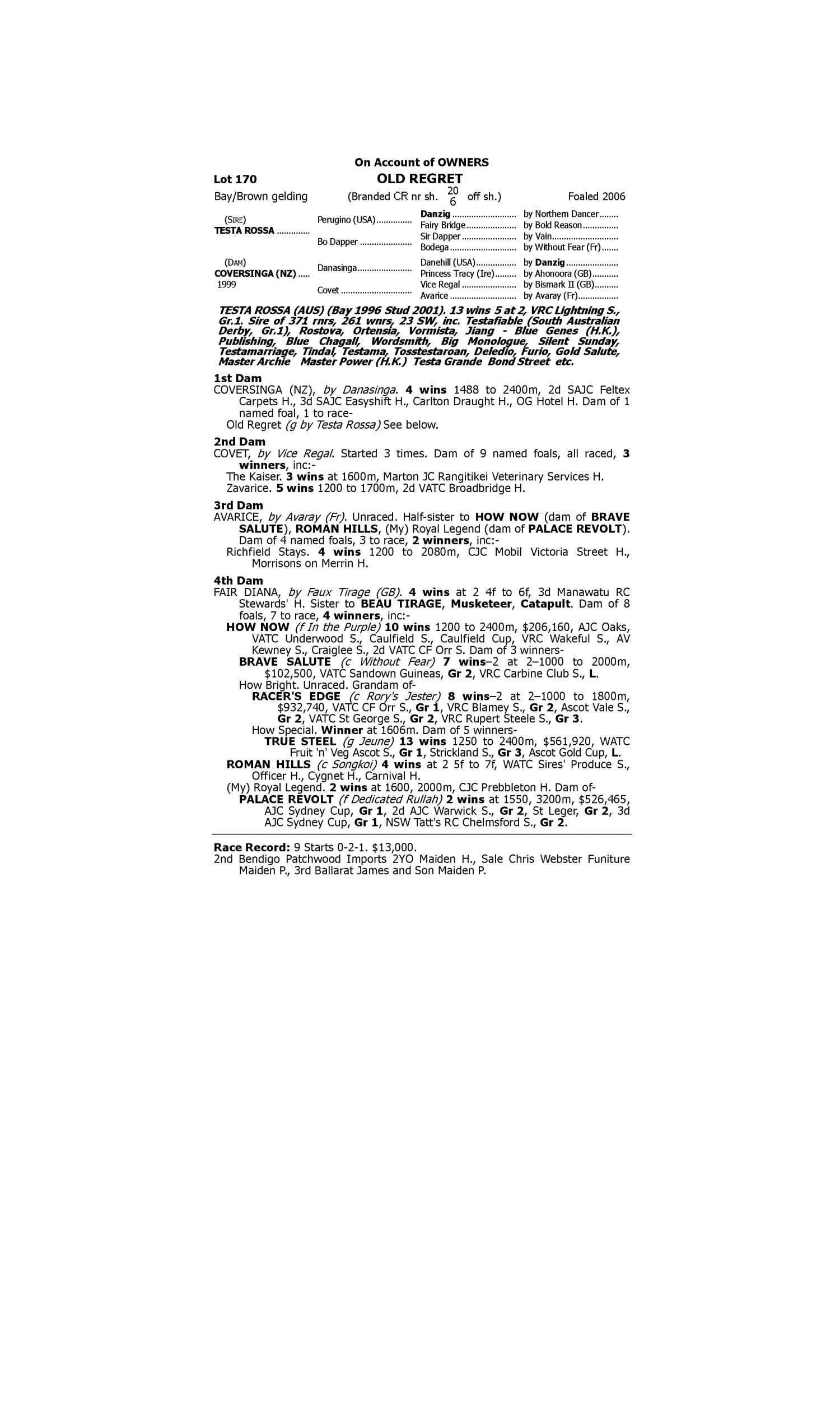 Pedigree for Lot 169 Filante (NZ) - Maria di Castiglia (GB)