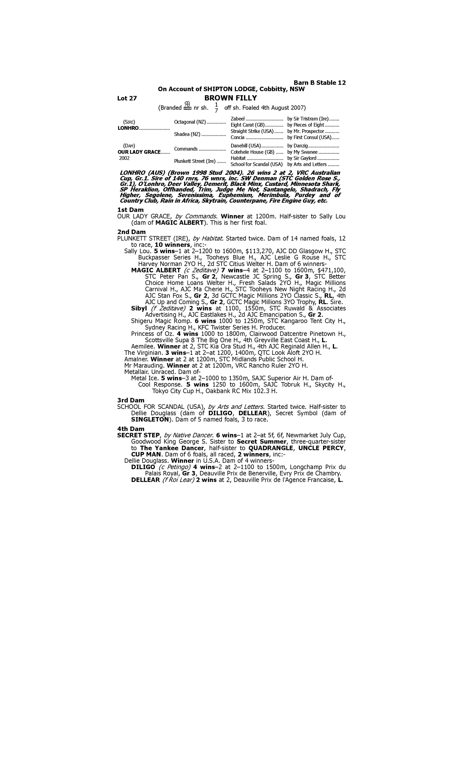 Lot 26 has pedigree updates since the release of the catalogue.