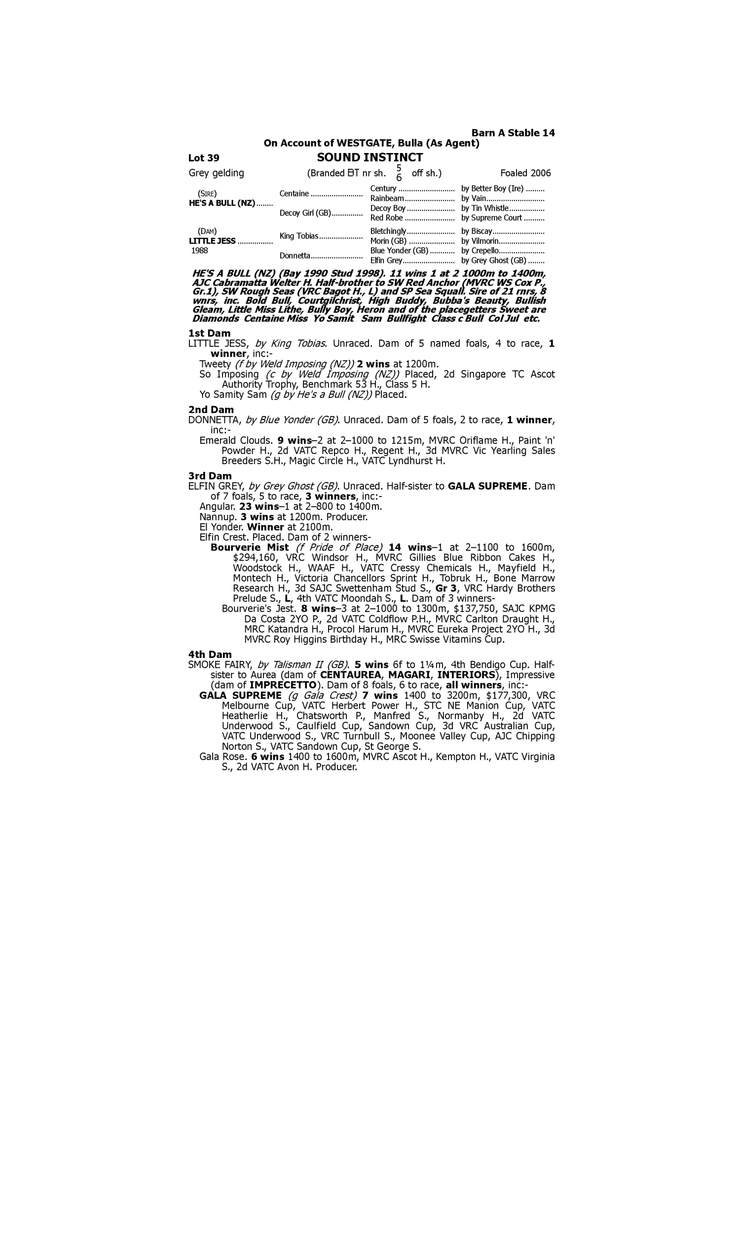 Lot 38 has pedigree updates since the release of the catalogue.