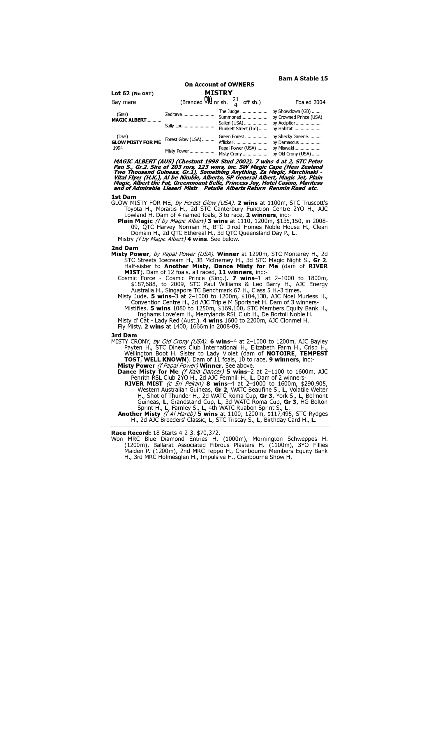 Pedigree for Lot 61 Elusive Quality (USA) - Magical Miss