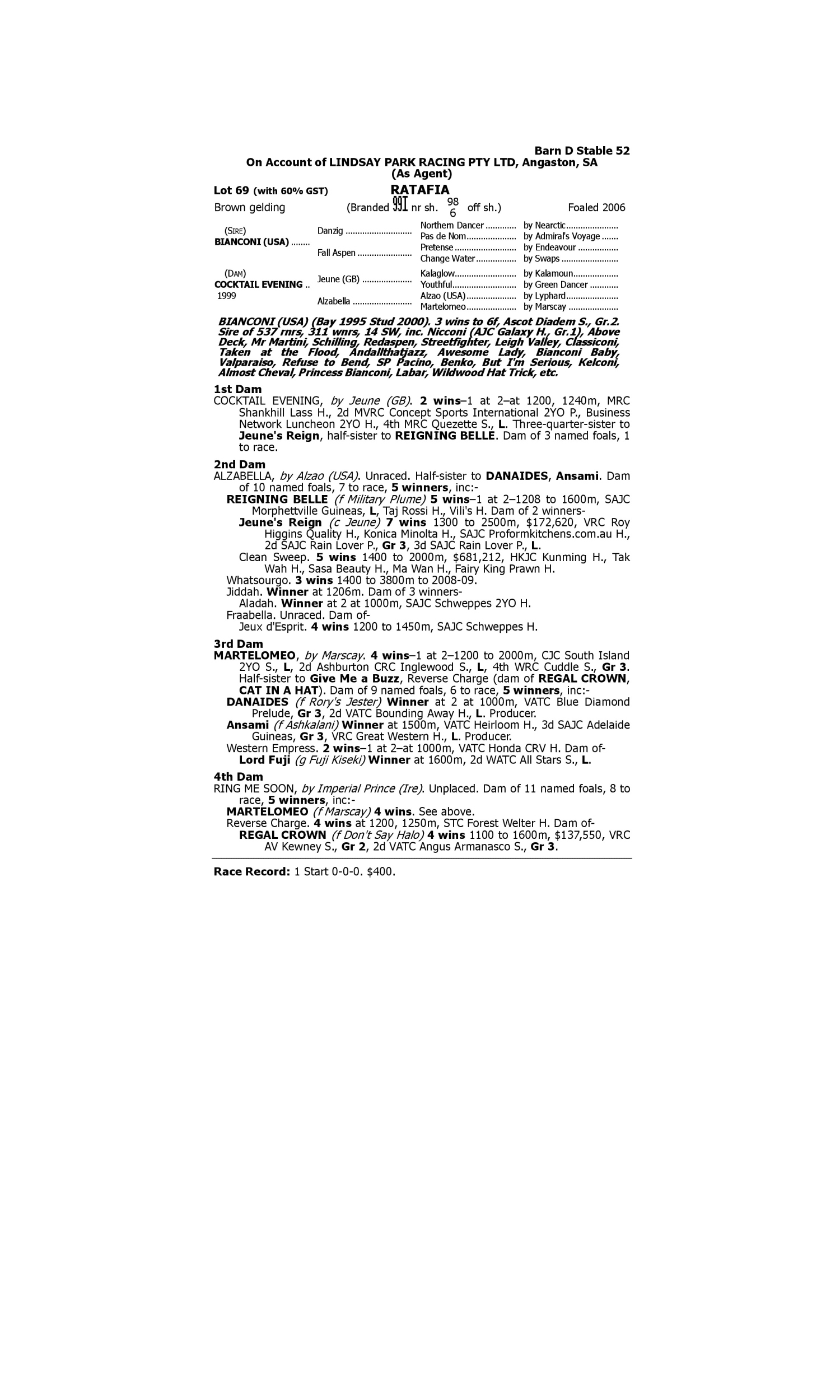 Lot 68 has pedigree updates since the release of the catalogue.
